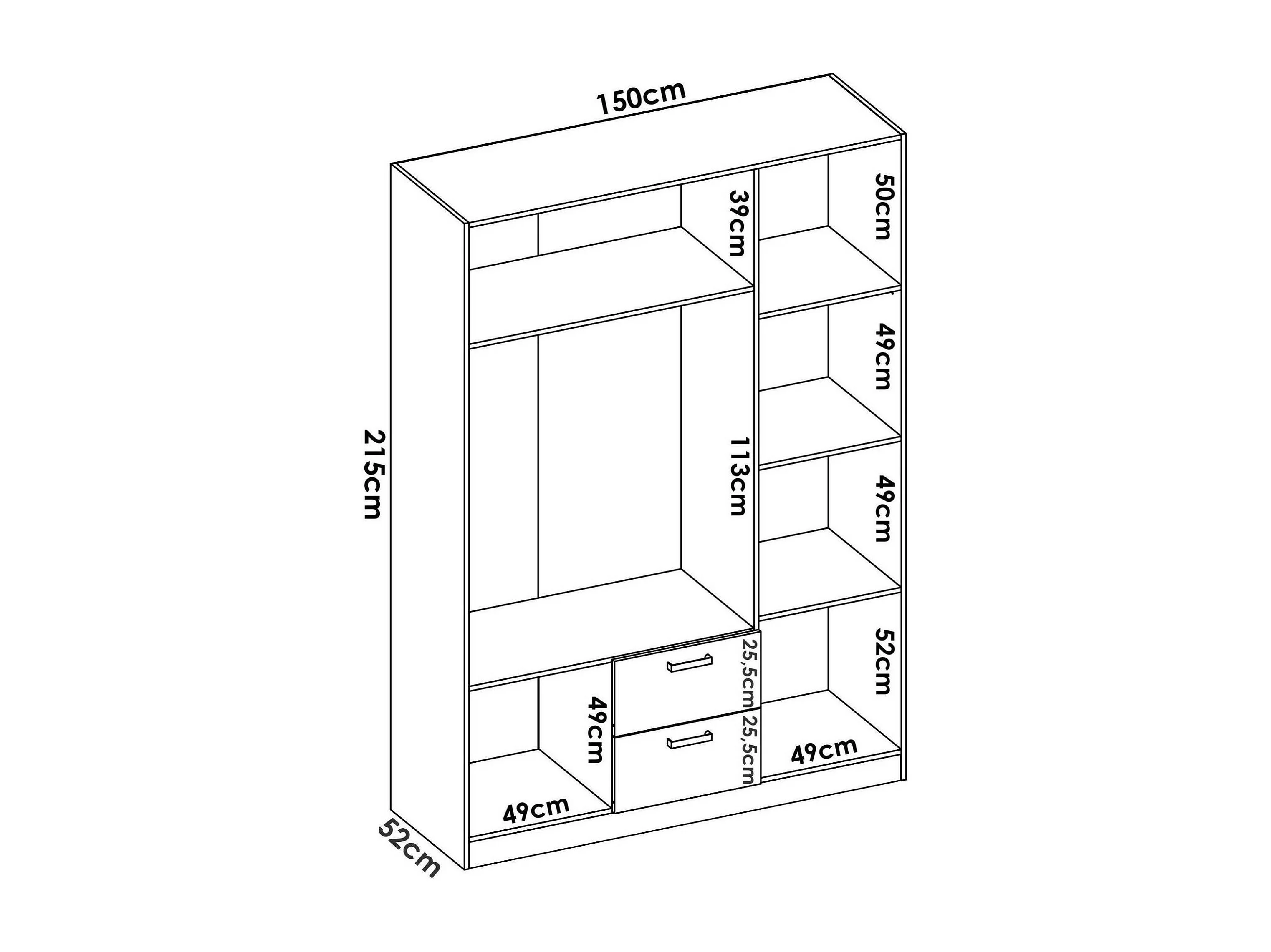 Dacca Armoire, Cintre pour chambre à coucher, Armoire avec 3 portes battantes et 2 tiroirs, 150x52h215 cm, Blanc