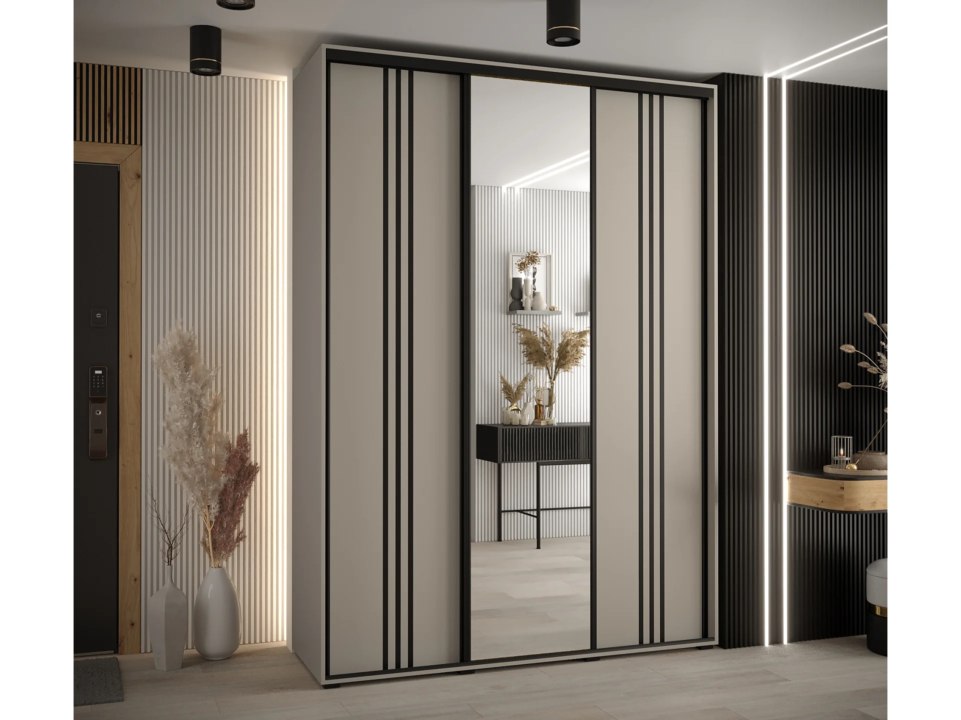 ARMOIRE DAKOTA 7 À PORTES COULISSANTES 235,2/170/45 3 portes (Cashmere/Noir)