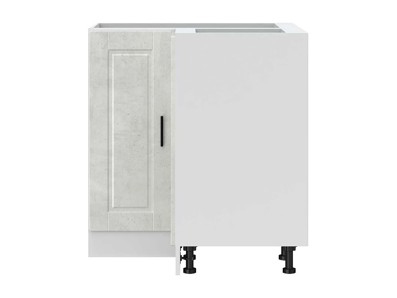 Armoire d'angle de cuisine gris béton bois d'ingénierie