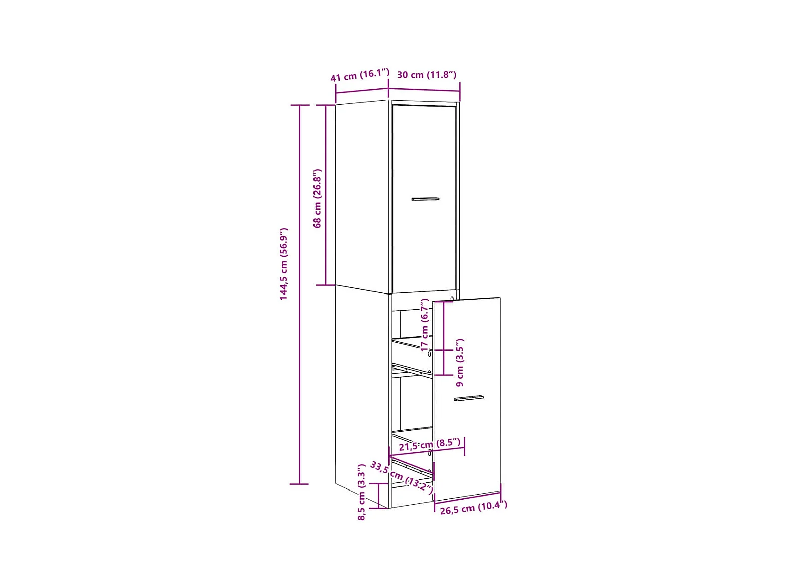 Armoire d'apothicaire gris béton 30x41x144,5 cm bois ingénierie