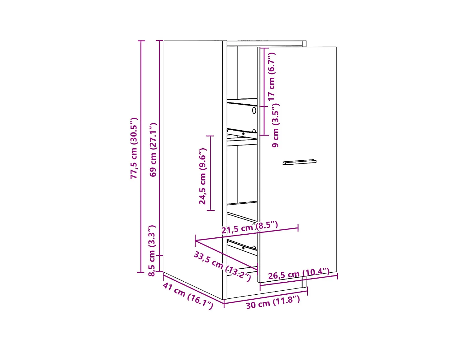 Armoire apothicaire sonoma gris 30x41x174,5cm bois d'ingénierie