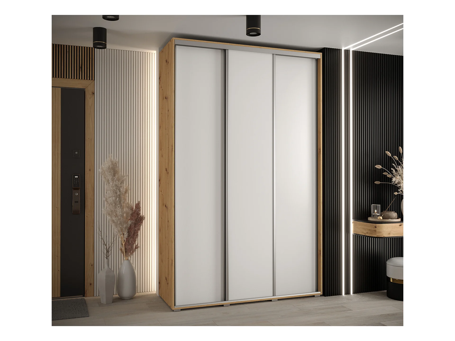 ARMOIRE DAVOS 1 À PORTES COULISSANTES 235,2/160/60 3 portes (Artisan/Blanc/Argent)