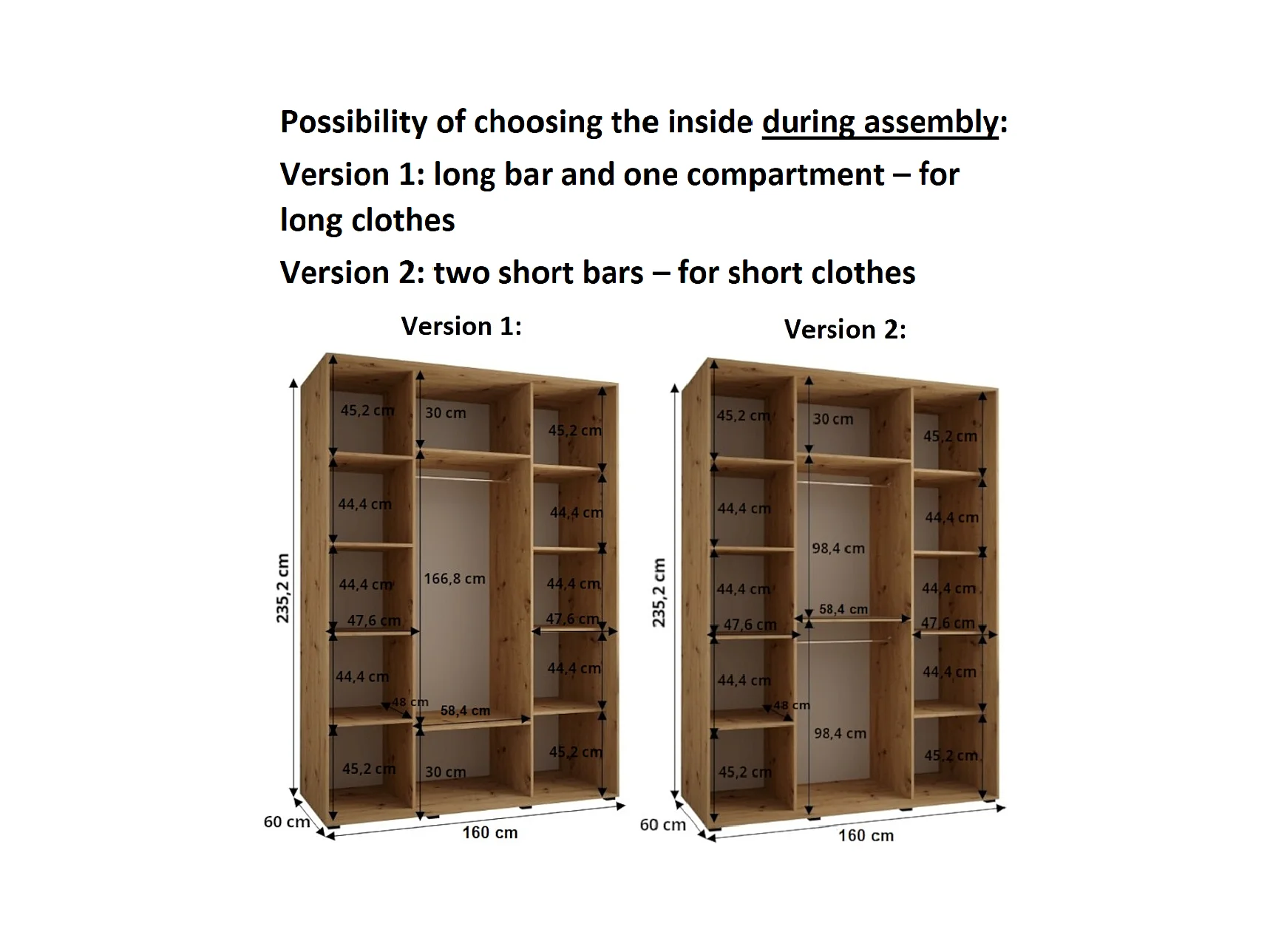 ARMOIRE DAVOS 1 À PORTES COULISSANTES 235,2/160/60 3 portes (Artisan/Blanc/Noir)