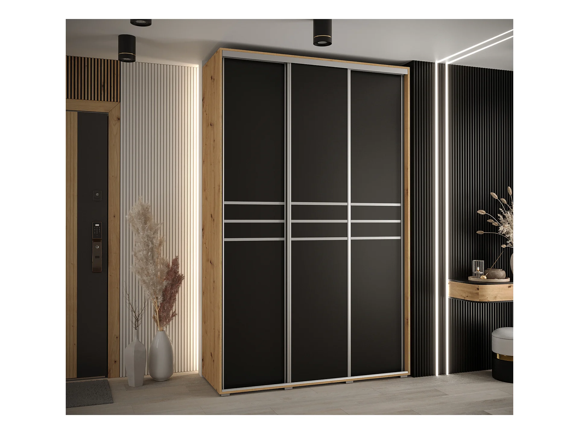 ARMOIRE DAVOS 8 À PORTES COULISSANTES 235,2/150/60 3 portes (Noir/Artisan/Noir)