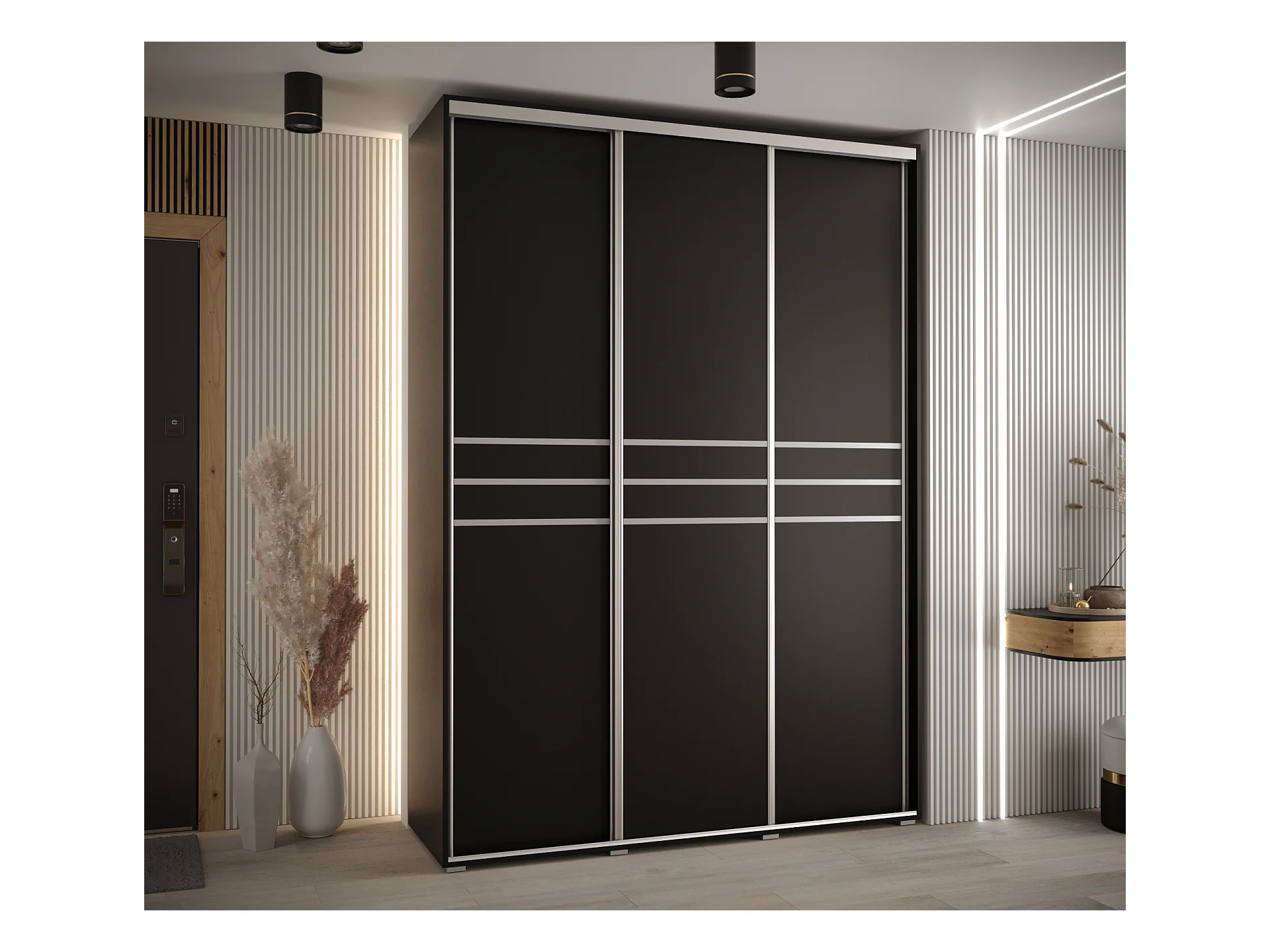 ARMOIRE DAVOS 8 À PORTES COULISSANTES 235,2/180/45 3 portes (Artisan/Noir/Noir)