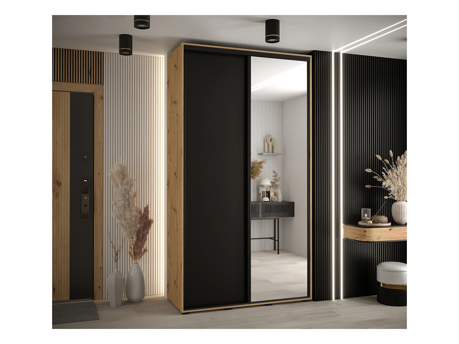 ARMOIRE DAVOS 2 À PORTES COULISSANTES 235,2/130/45 2 portes (Artisan/Artisan/Noir)