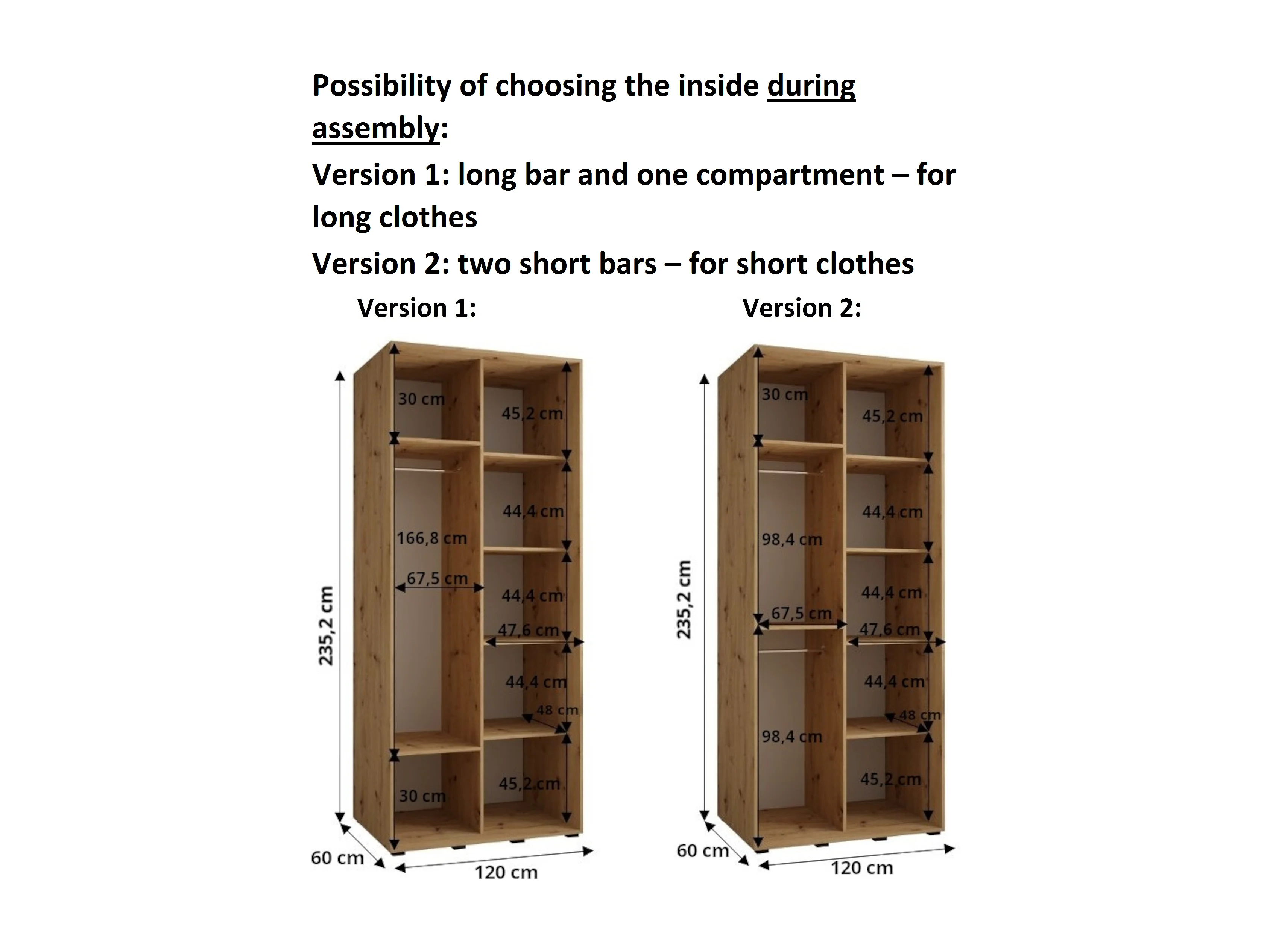 ARMOIRE DAVOS 4 À PORTES COULISSANTES 235,2/120/60 2 portes (Artisan/Noir/Noir)