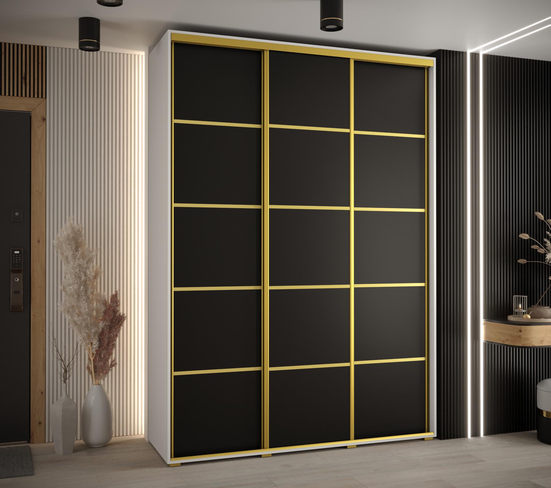 ARMOIRE DAVOS 4 À PORTES COULISSANTES 235,2/180/60 3 portes (Blanc/Noir/Or)