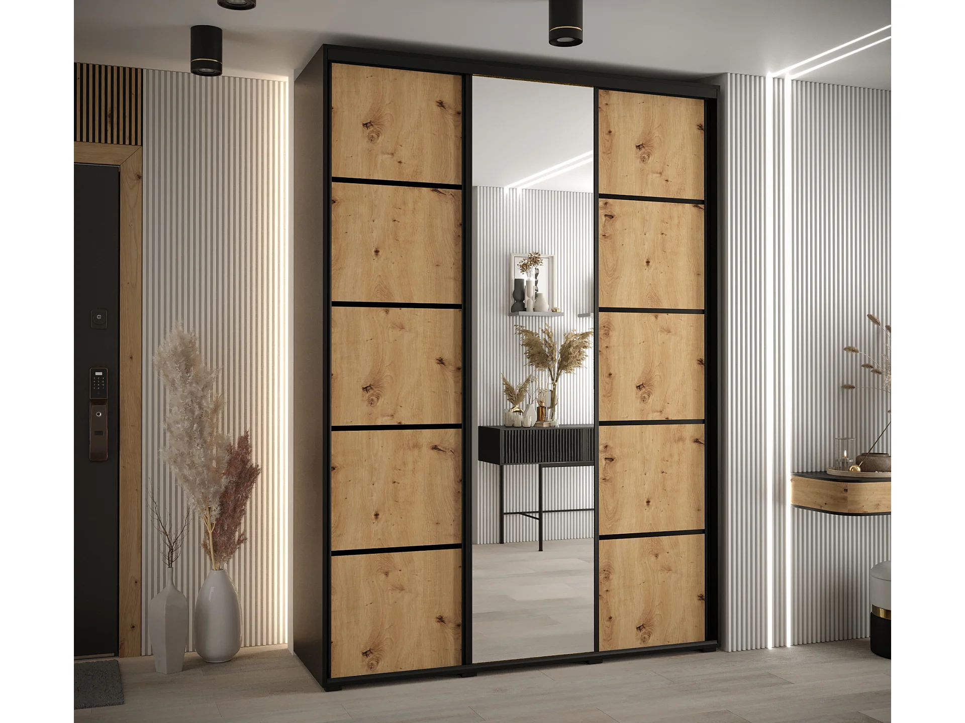 ARMOIRE DAVOS 8 À PORTES COULISSANTES 235,2/150/45 3 portes (Noir/Artisan/Noir)