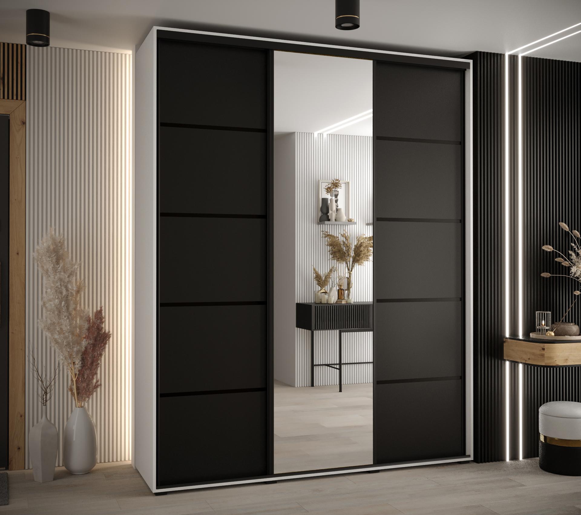ARMOIRE DAVOS 5 À PORTES COULISSANTES 235,2/180/60 3 portes (Blanc/Noir/Noir)