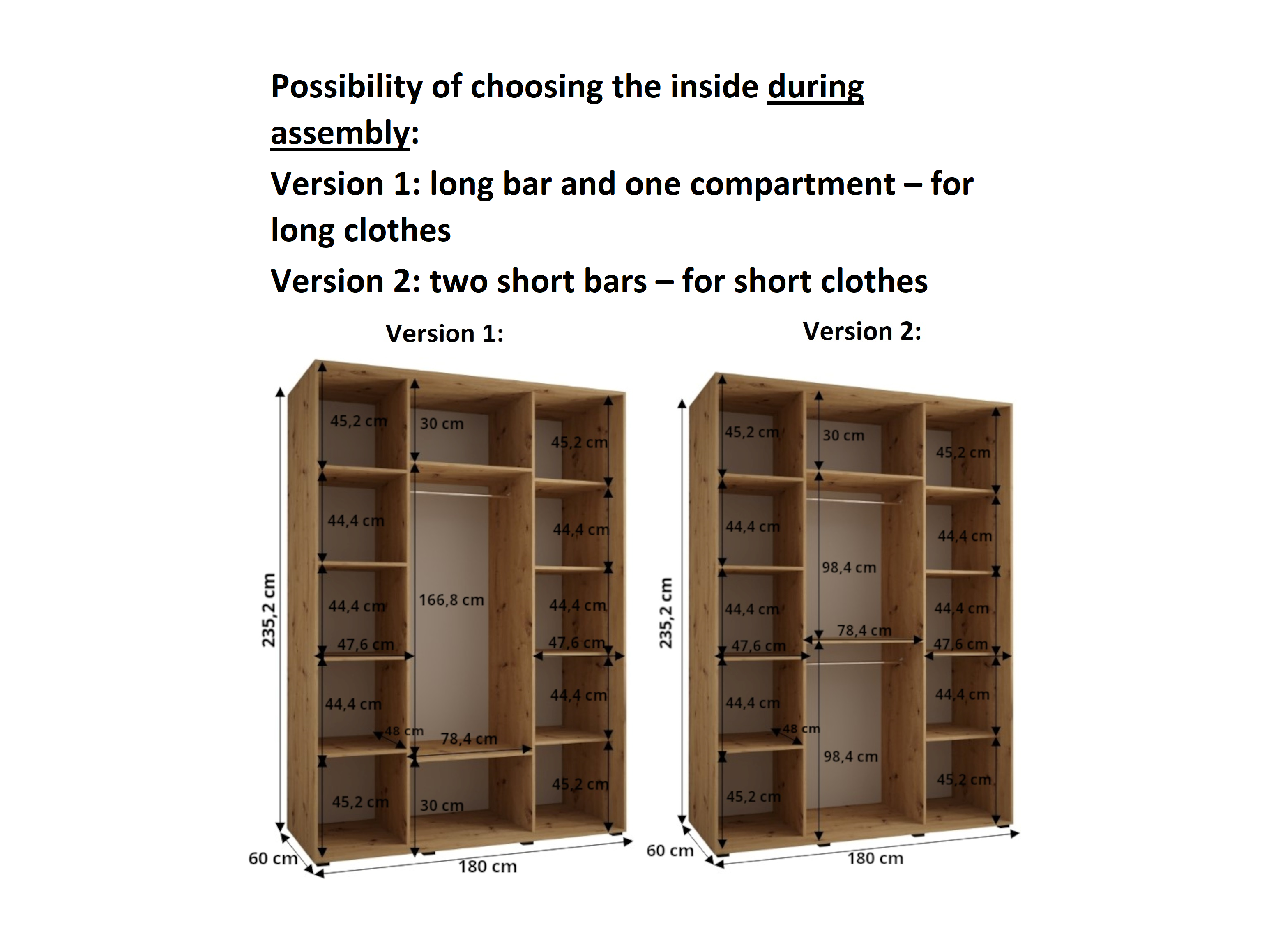 ARMOIRE DAVOS 8 À PORTES COULISSANTES 235,2/120/60 2 portes (Artisan/Blanc/Noir)