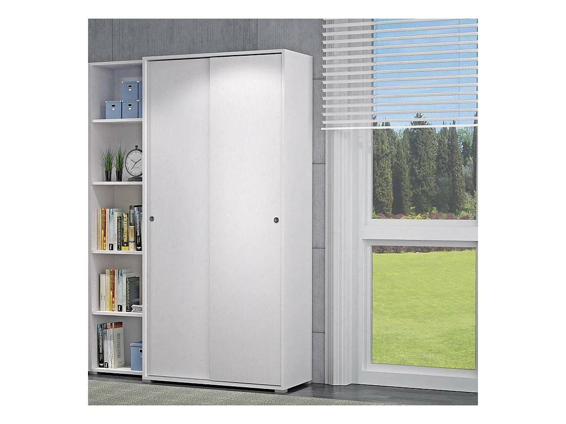 Armoire Kilimandjaro, Cintre pour chambre à coucher, Armoire avec 2 portes coulissantes, 100x50h204 cm, Blanc