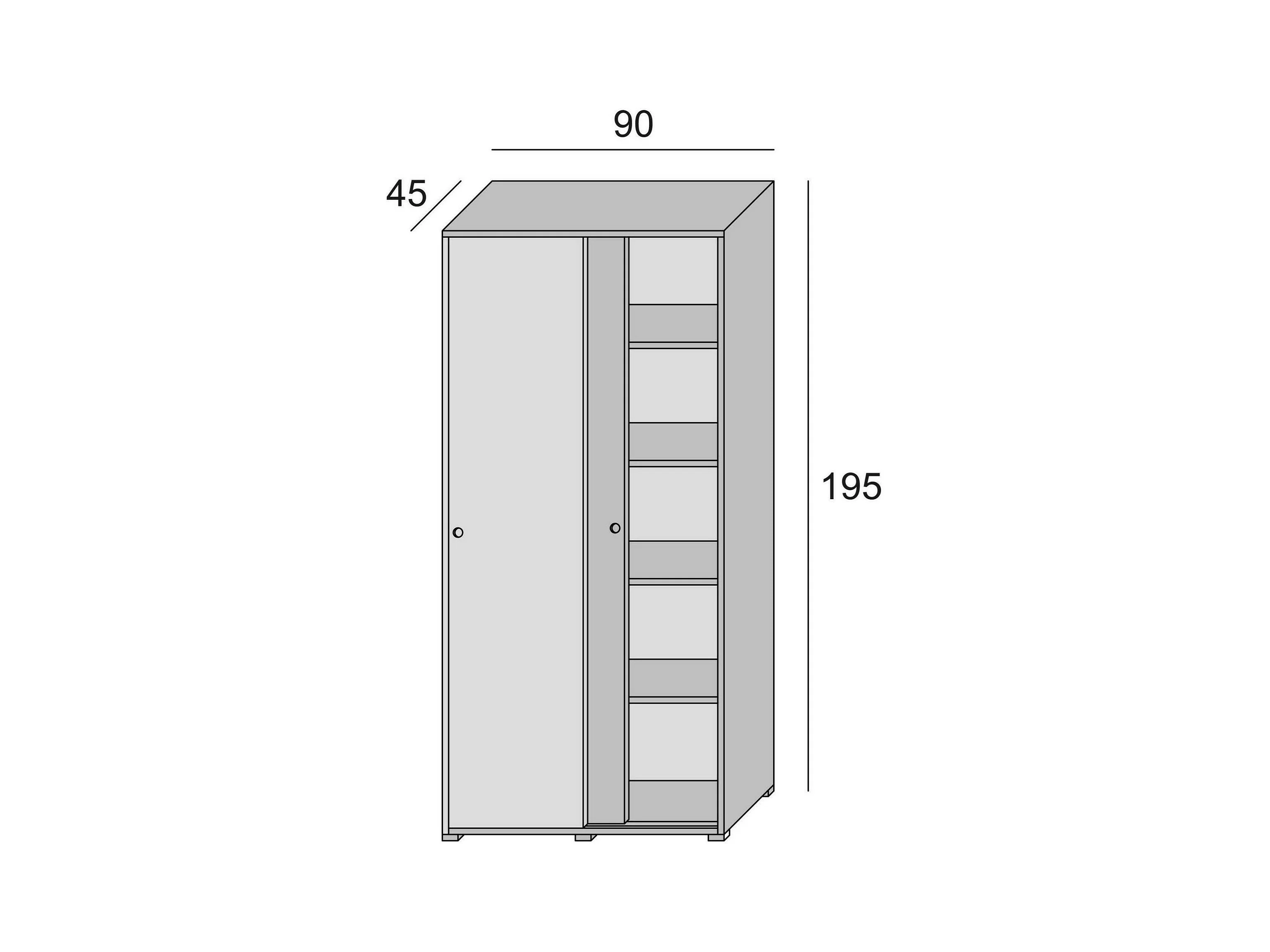 Armoire Dbuti, armoire avec 2 portes coulissantes et 4 étagères, mobilier de chambre polyvalent moderne, 100% Made in Italy, 90x45h195 cm, Blanc
