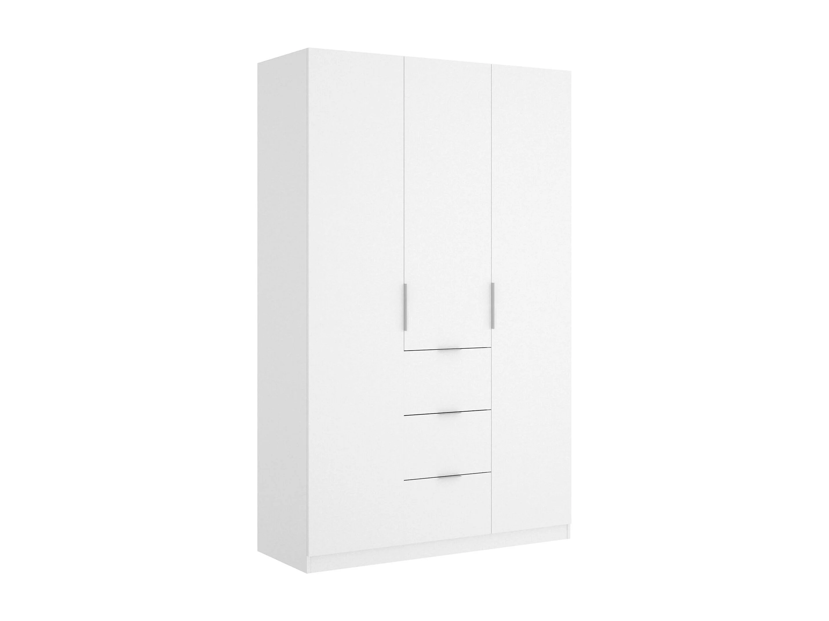 Dcurt Armoire, Cintre pour chambre à coucher, Armoire avec 3 portes battantes et 3 tiroirs, 135x52h204 cm, Blanc