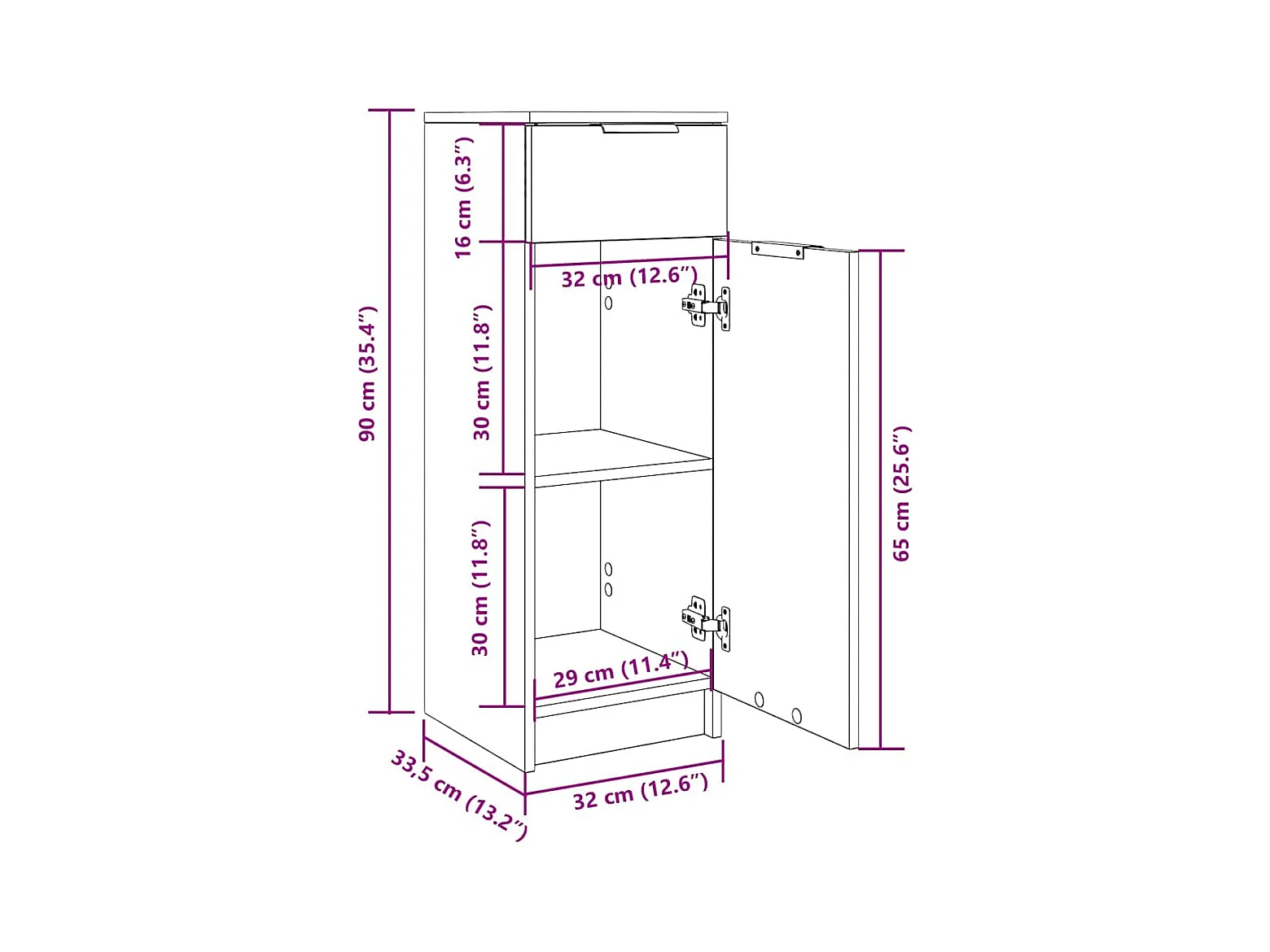 Armoire de bain Chêne fumé 32x34x90 cm Bois d'ingénierie