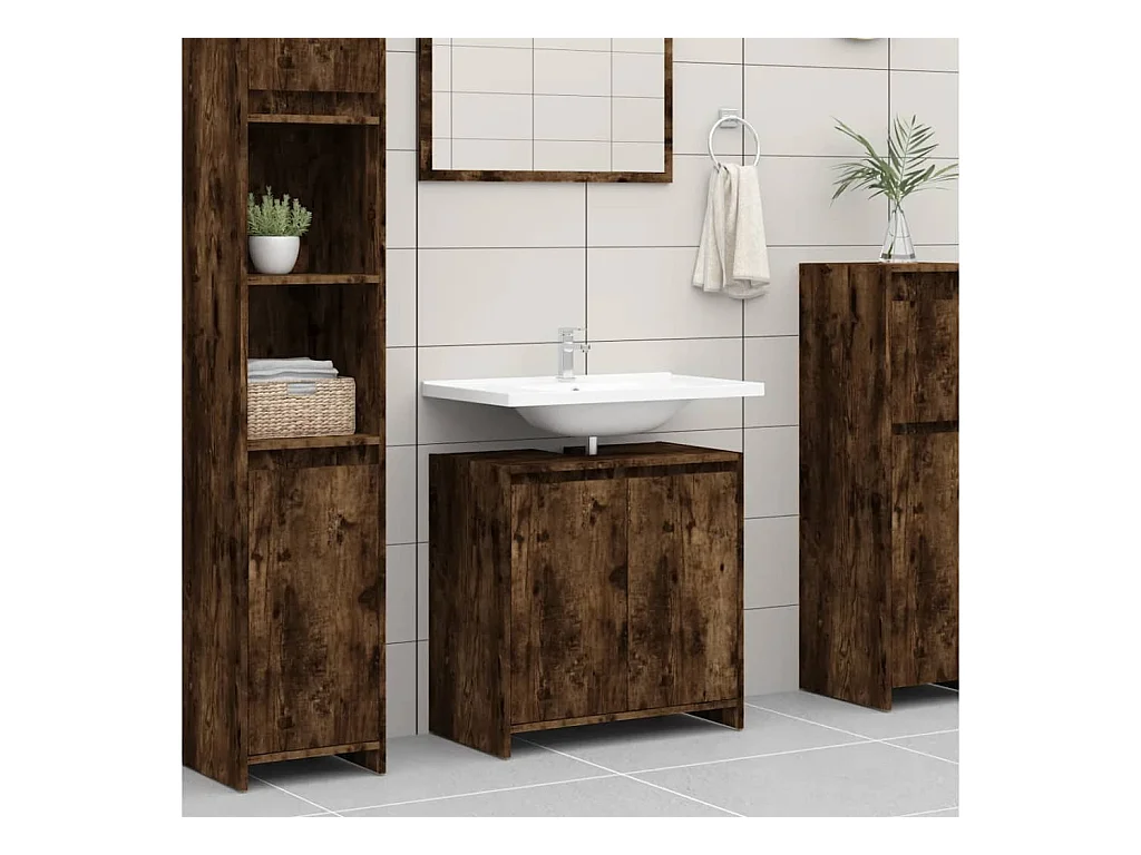 Armoire de bain chêne fumé 65x33x60 cm bois d'ingénierie FR16440