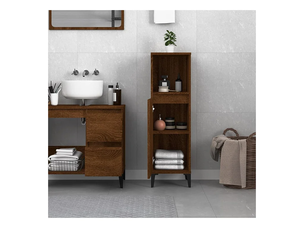 Armoire de bain chêne marron 30x30x100 cm bois d'ingénierie