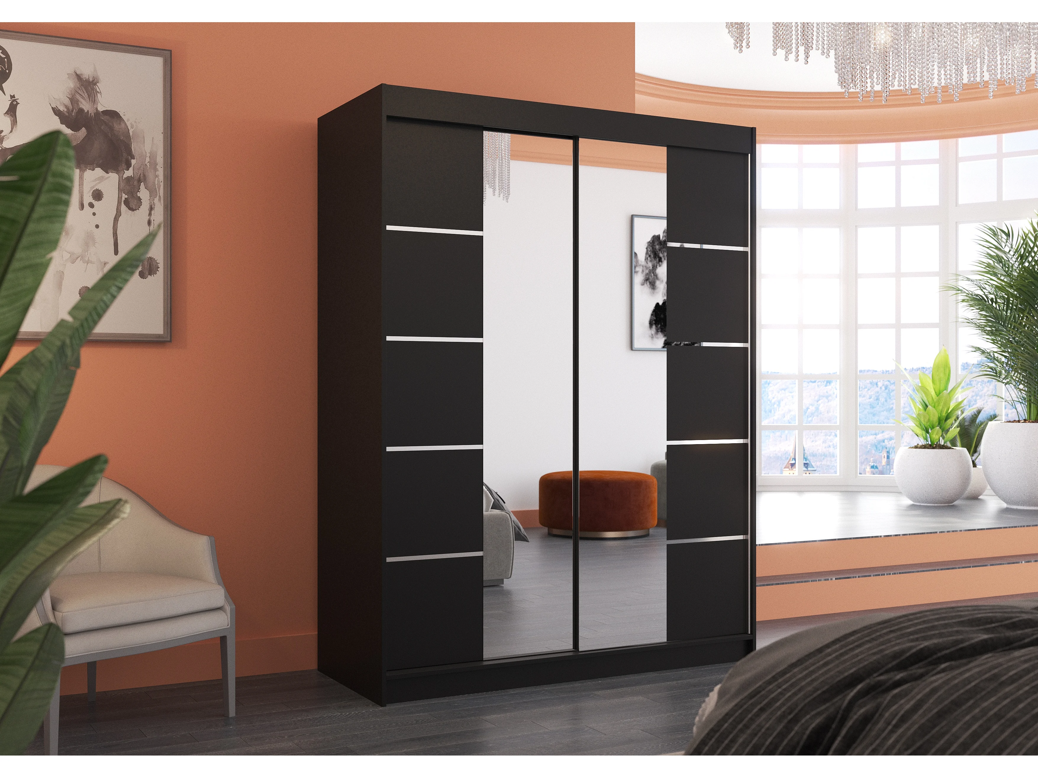 Armoire de chambre noir 2 portes coulissantes avec miroir Modela 150cm