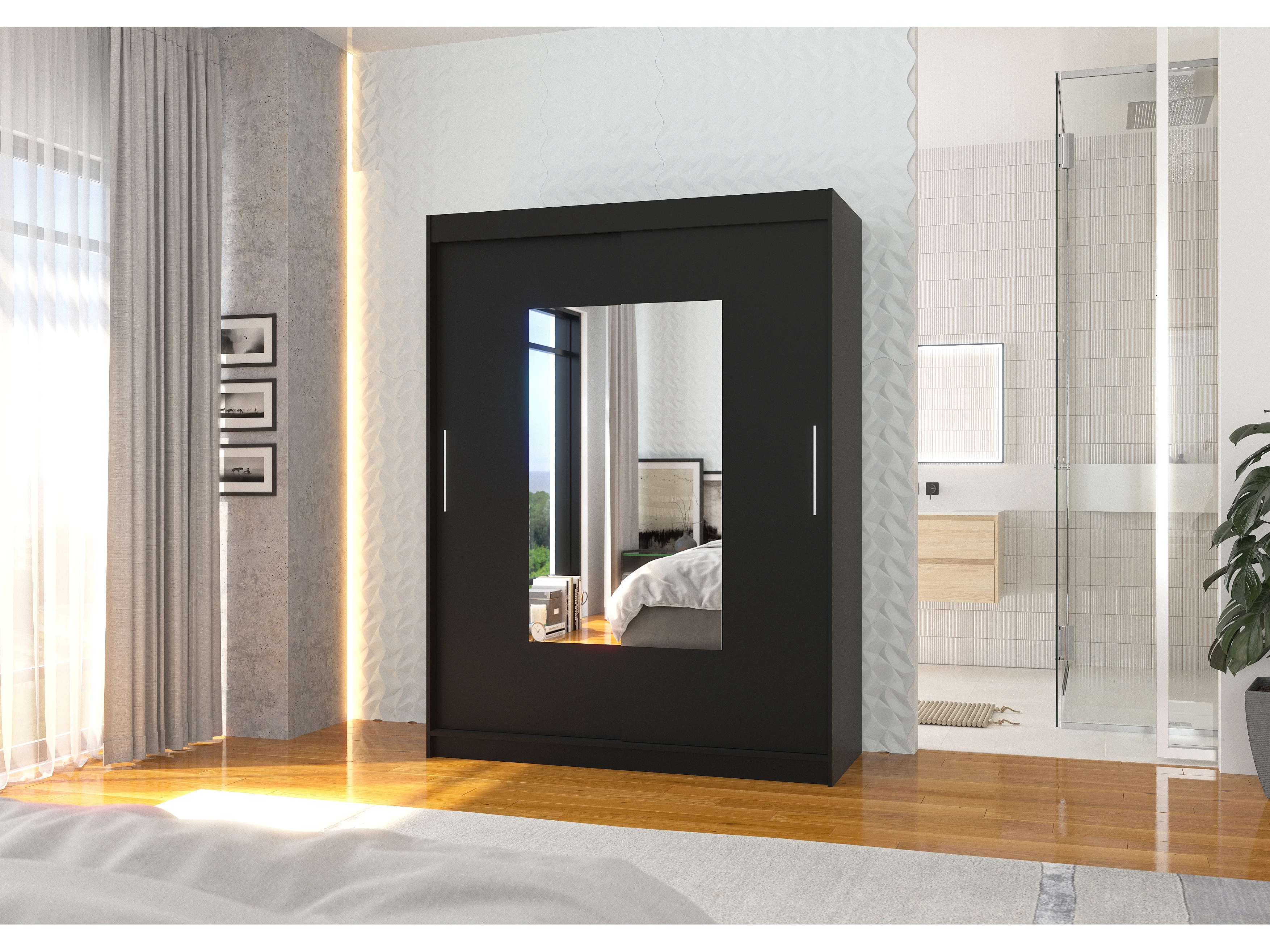 Armoire de chambre noir 2 portes coulissantes avec miroir Modela 150cm