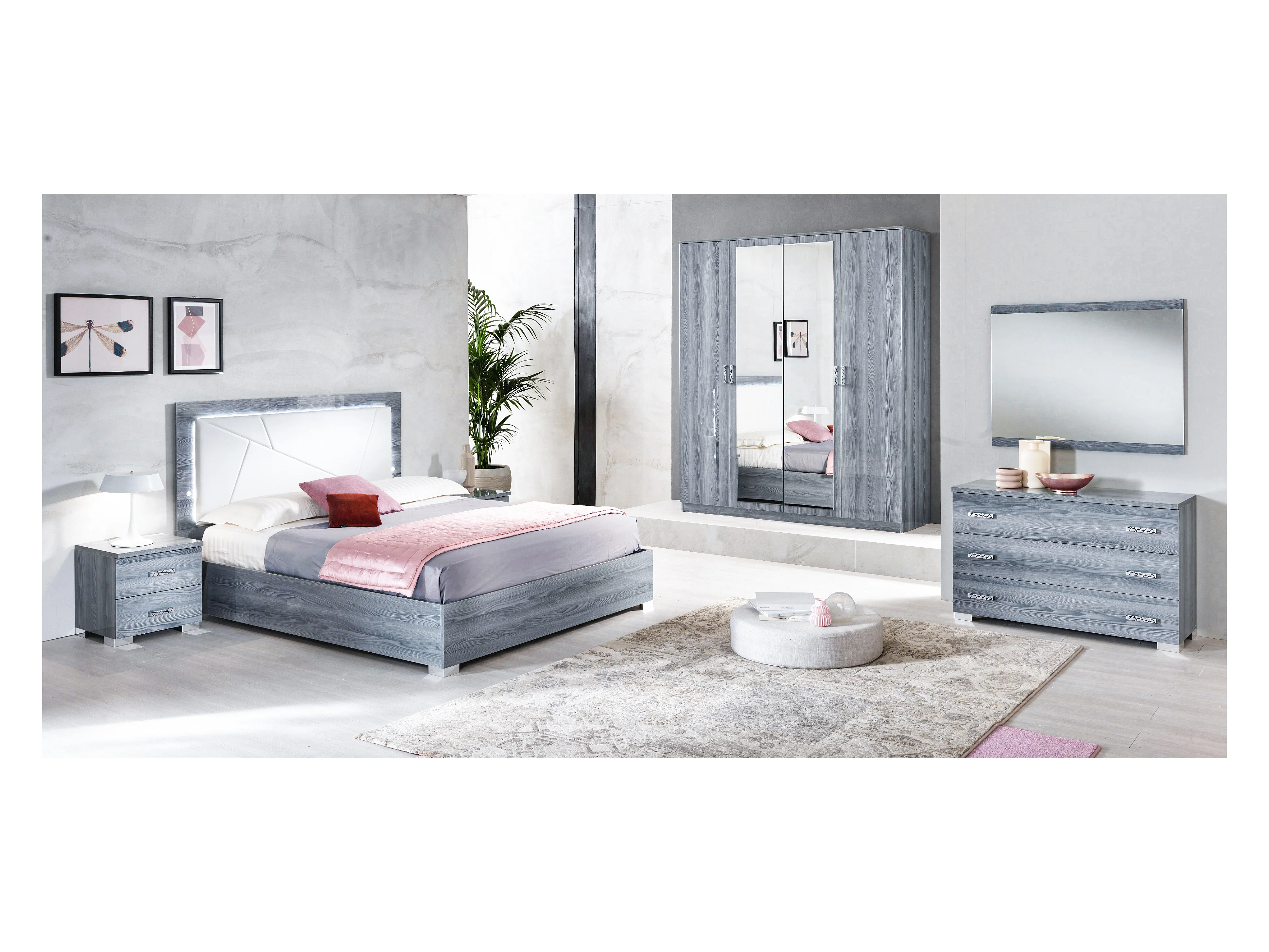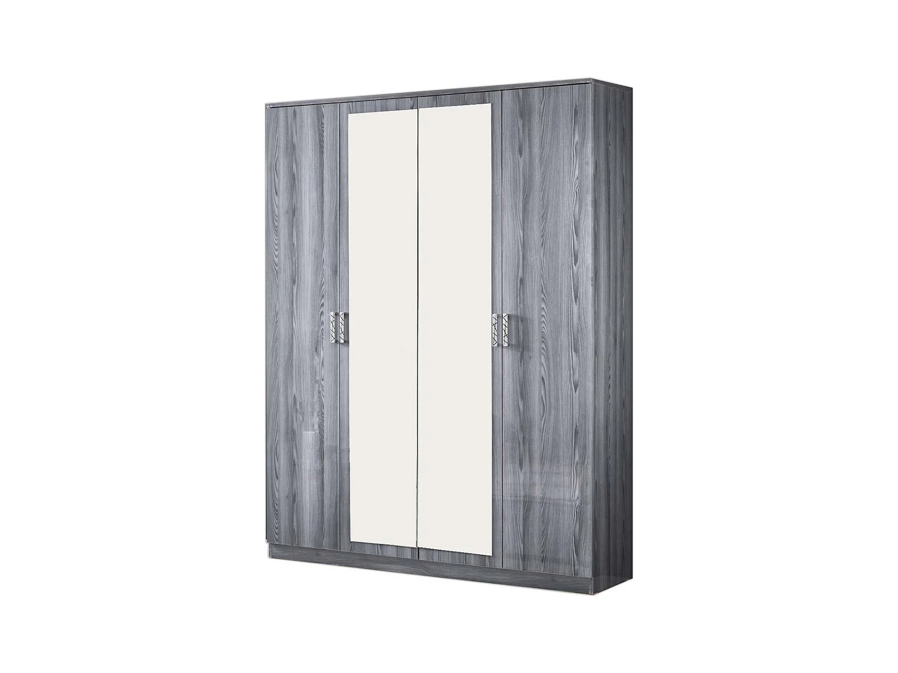 Armoire de chambre 4 portes battantes bois blanc et bois gris brillant marbré doré Dova 162cm