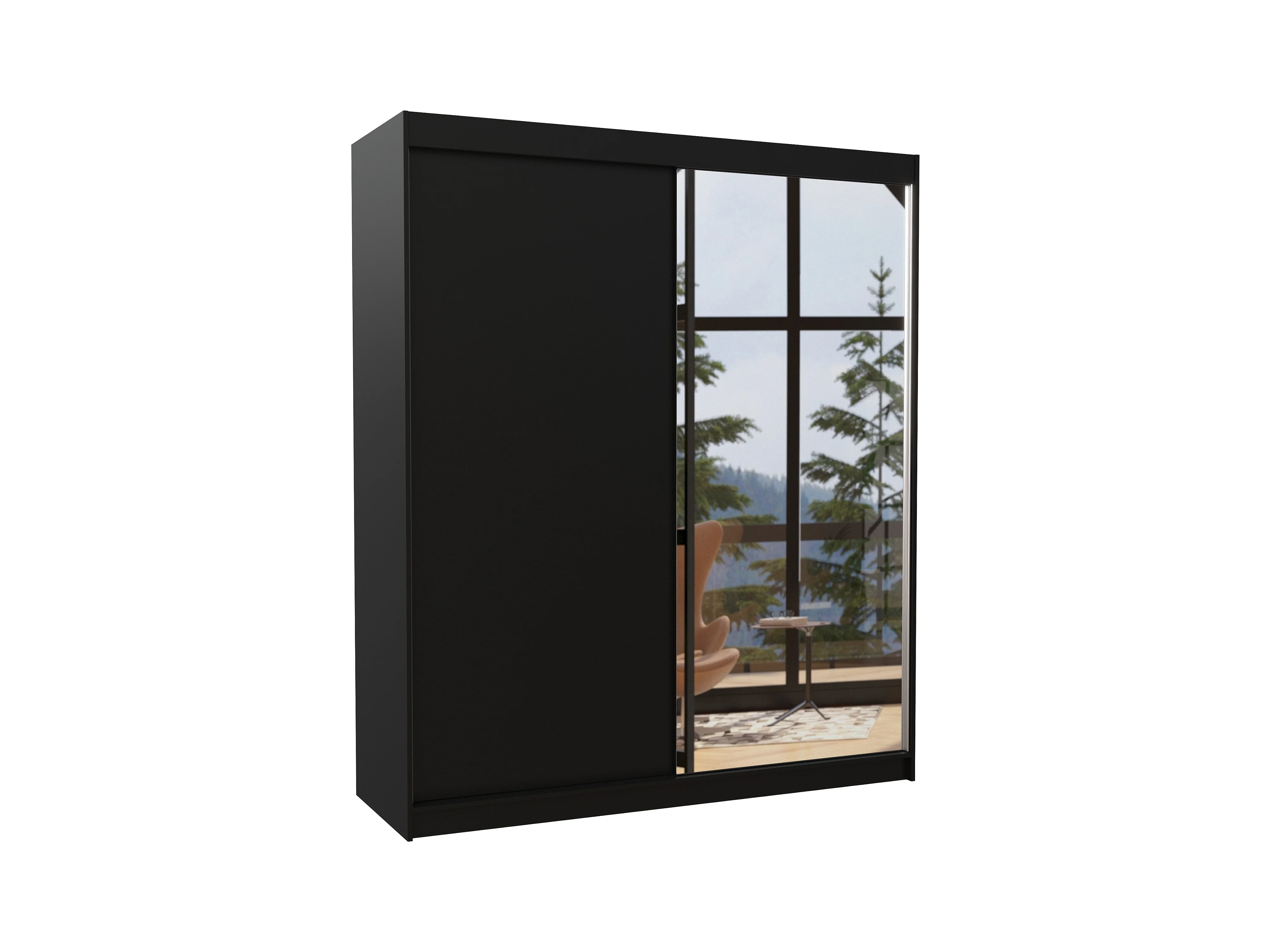 Armoire de chambre à coucher 2 portes coulissantes 1 noir et 1 miroir Masso 180cm