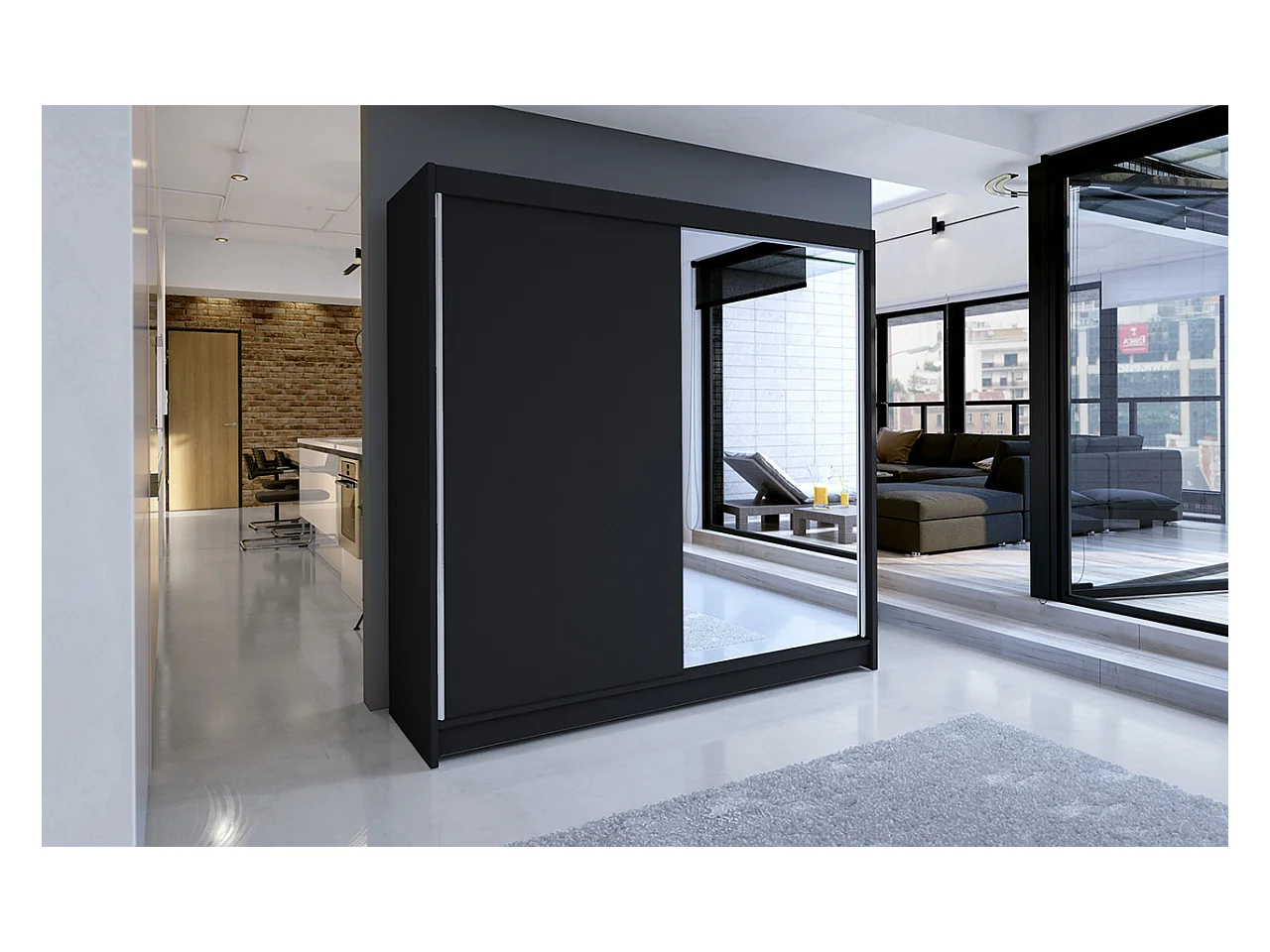 Armoire de chambre design noir 2 portes coulissantes avec miroir Ibizo 180cm