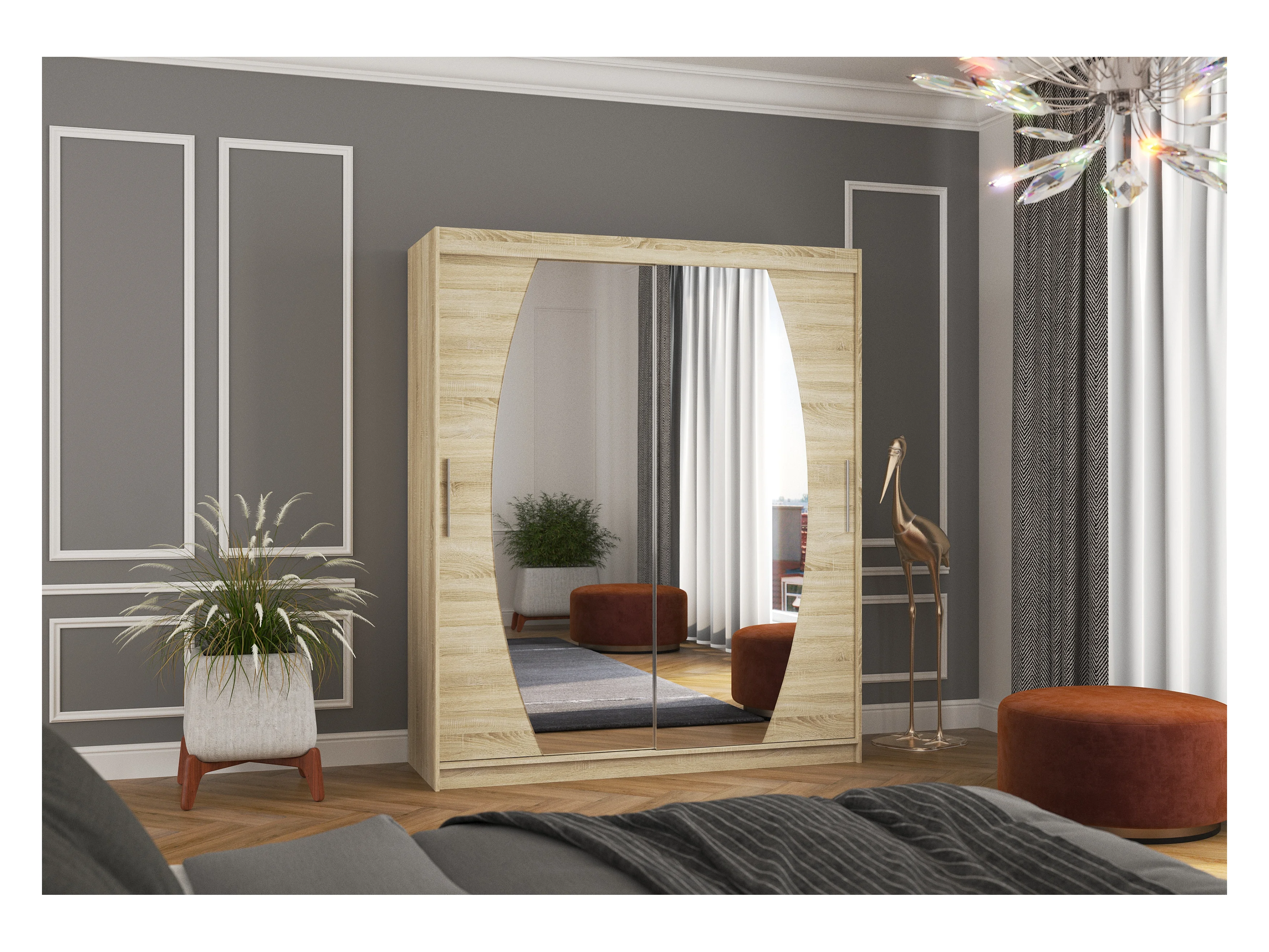 Armoire de chambre à coucher 2 portes coulissantes 1 bois clair et 1 miroir Masso 180cm