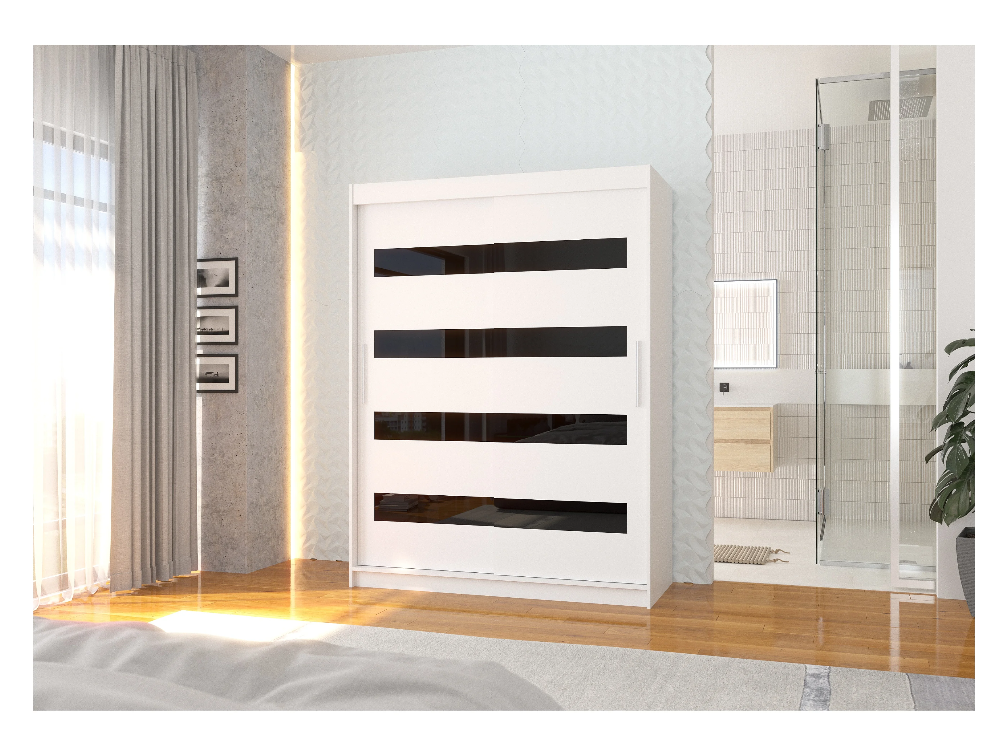Armoire de chambre à coucher blanche 2 portes coulissantes blanc mat et noir laqué Zanko 150cm