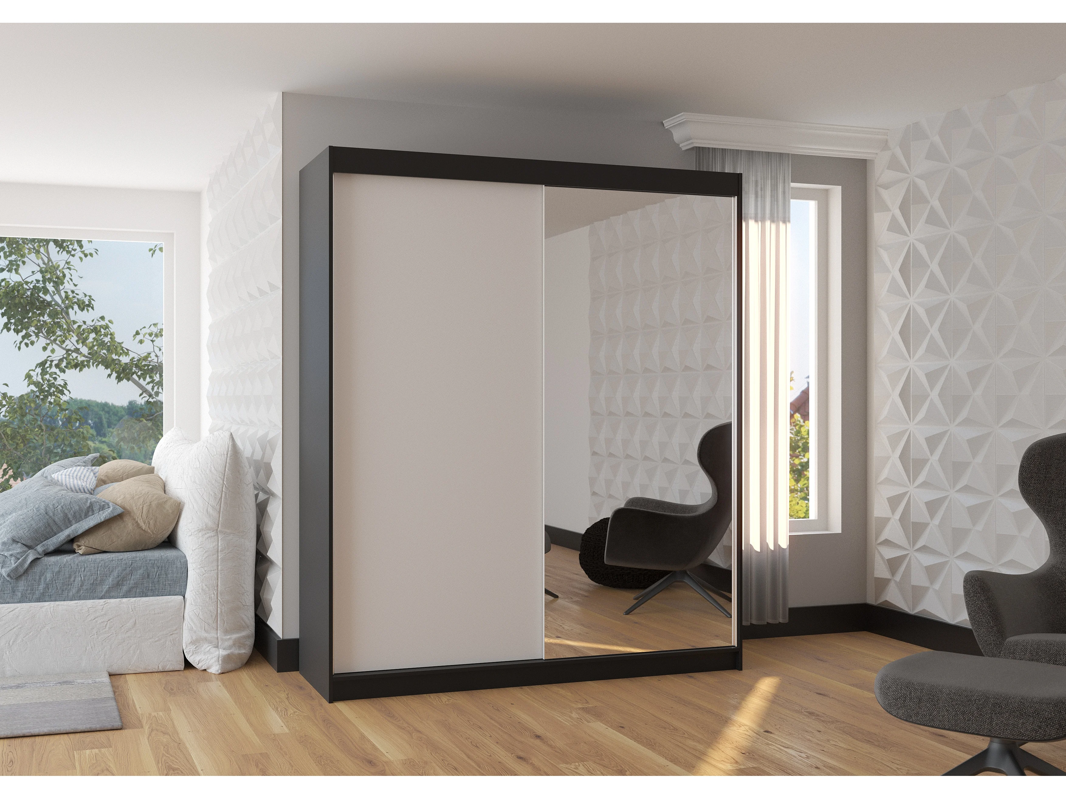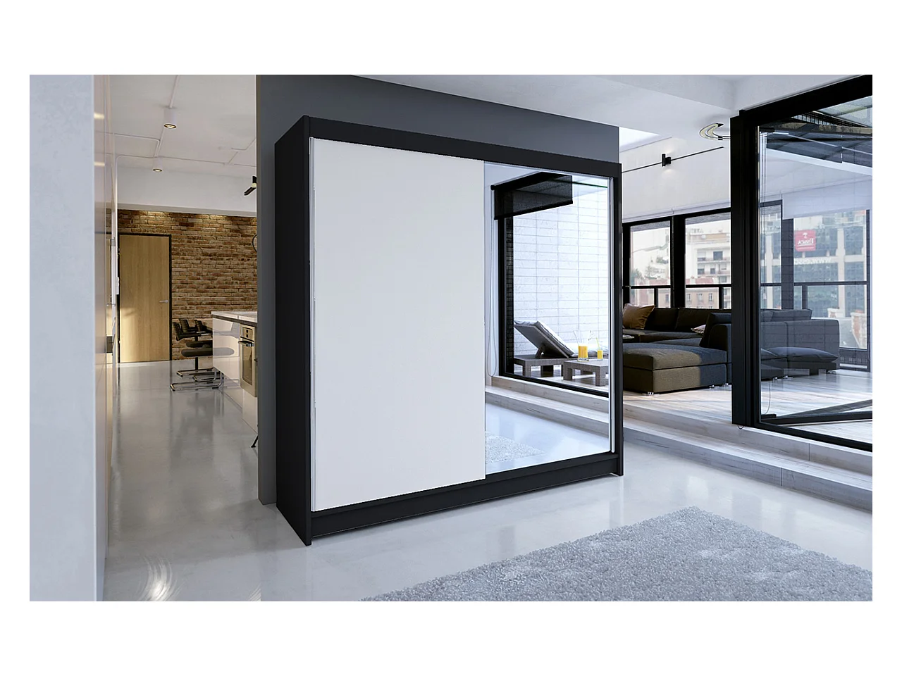 Armoire de chambre à coucher noir 2 portes coulissantes blanc et miroir Dally 180cm