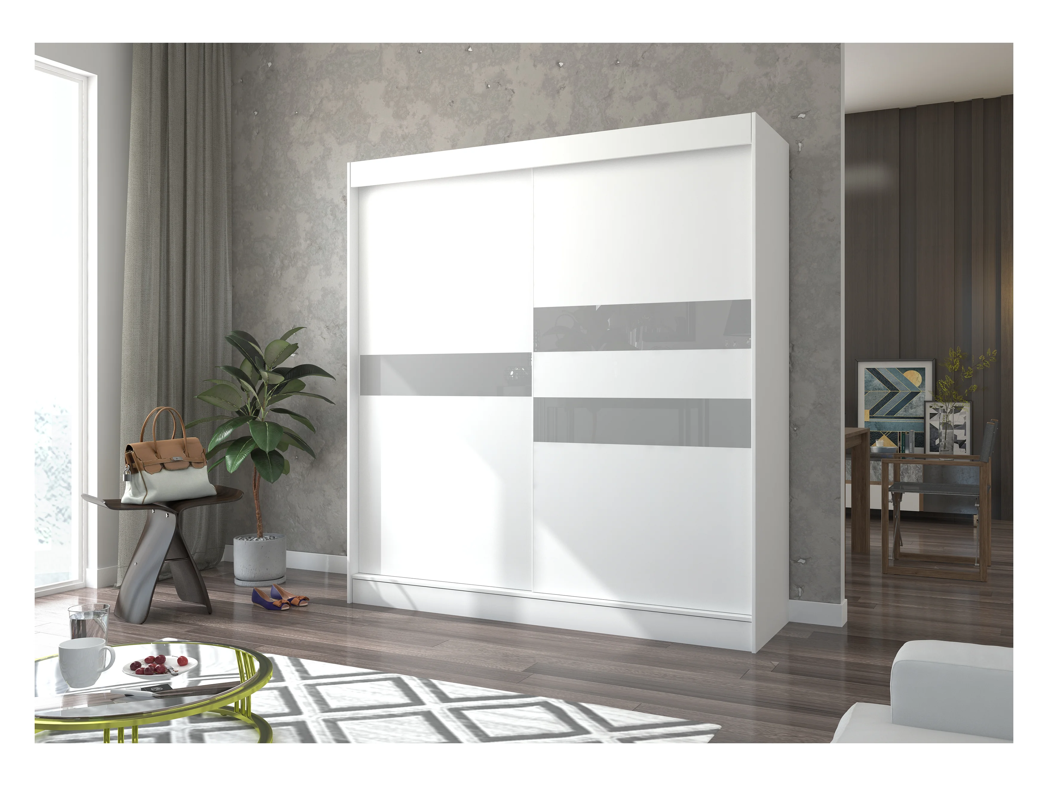 Armoire de chambre à portes coulissantes bois blanc mat et gris laqué Korza - 3 tailles-Largeur 200 cm