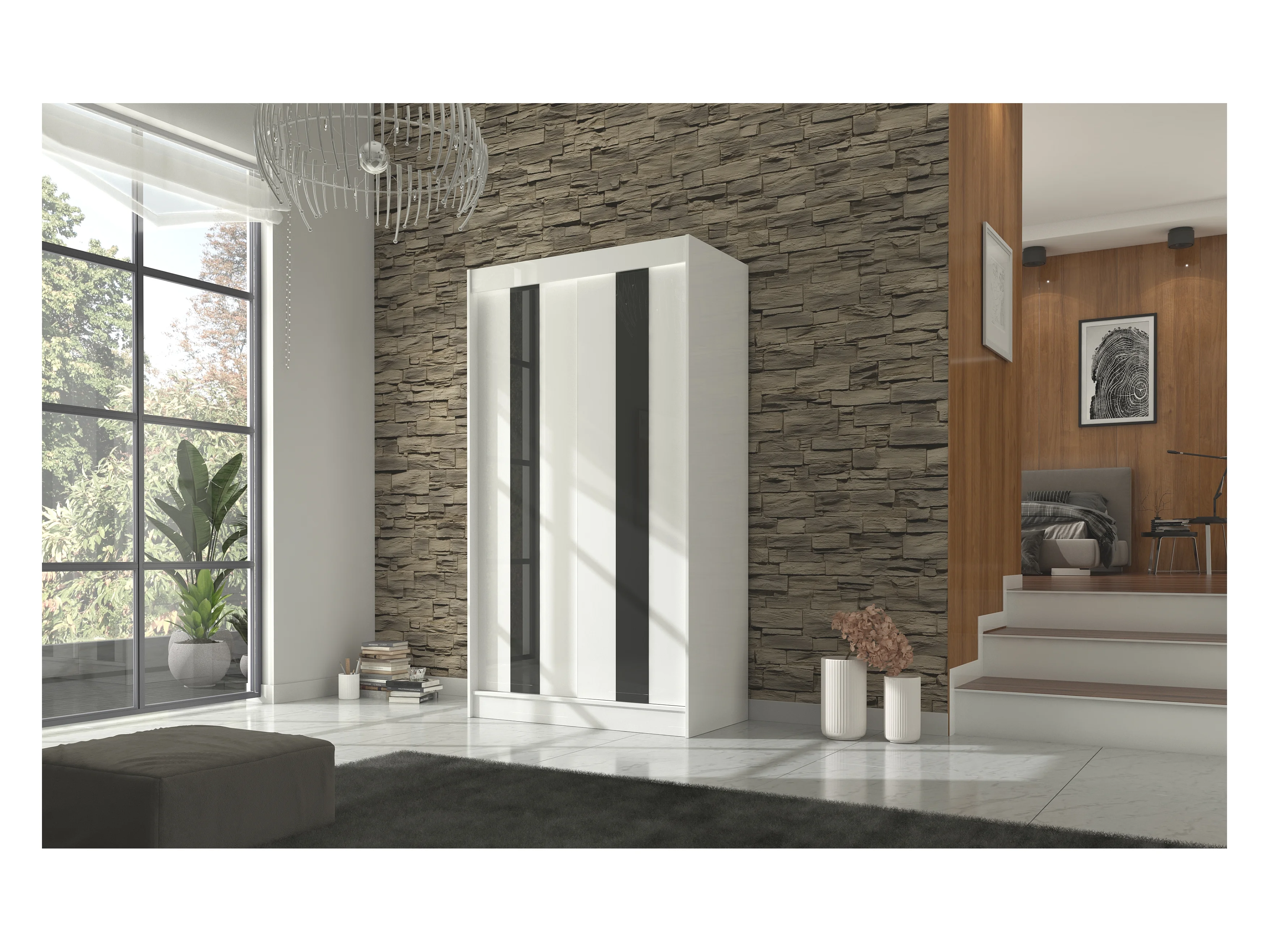 Armoire de chambre à portes coulissantes bois blanc mat et noir laqué Karola - 3 tailles-Largeur 120 cm