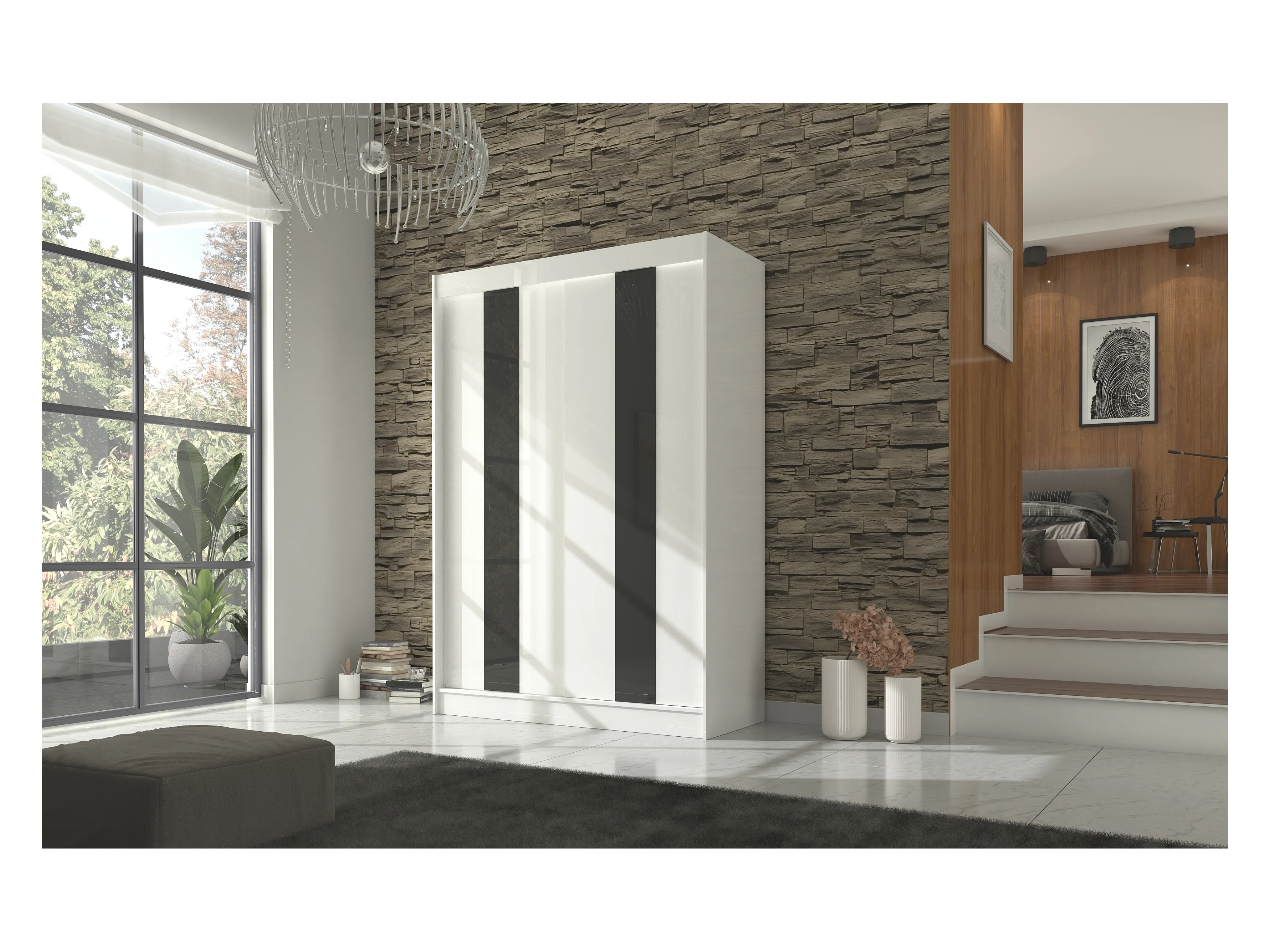 Armoire de chambre noir à portes coulissantes bois blanc mat et gris laqué Korza - 3 tailles-Largeur 120 cm