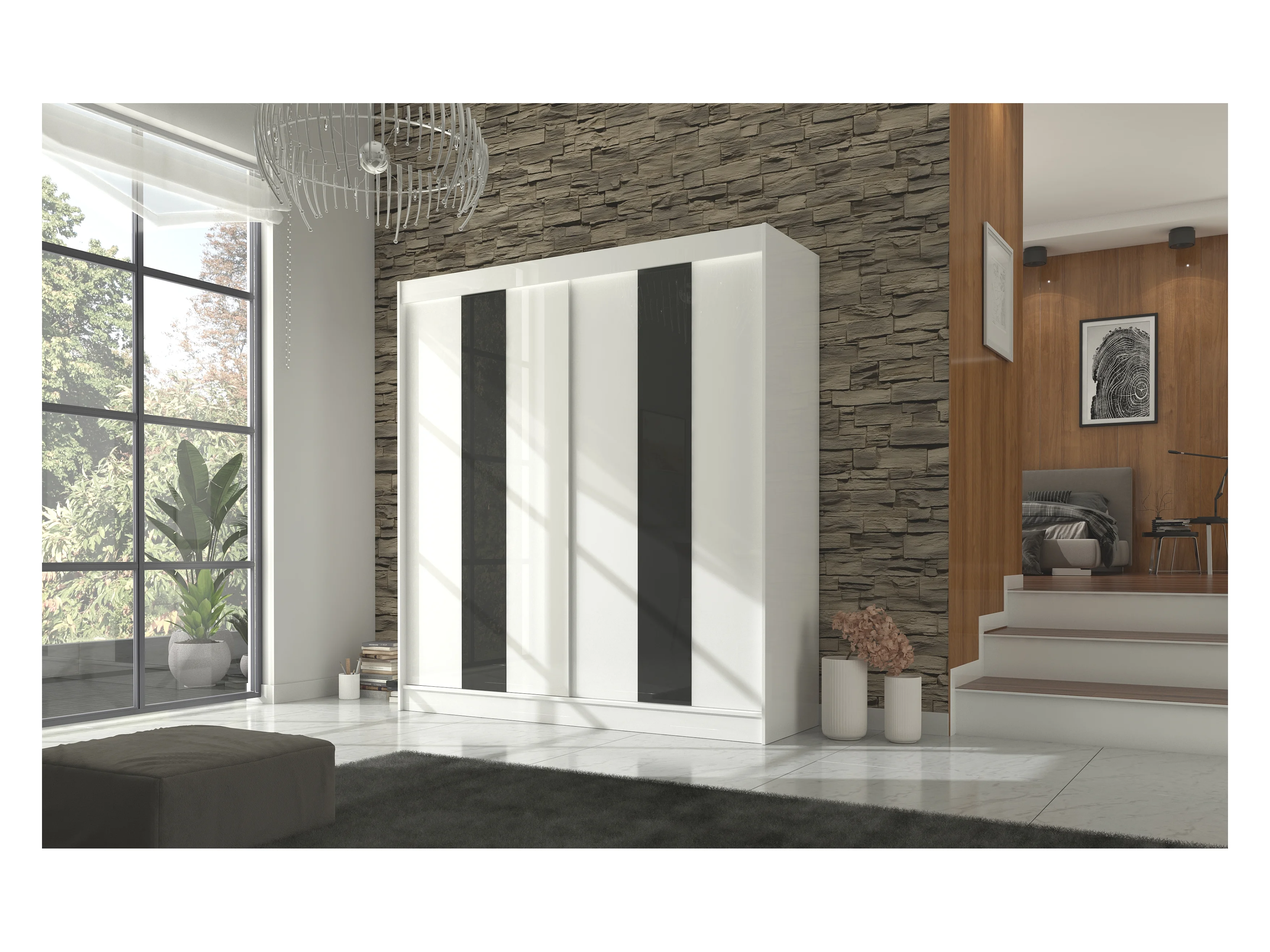 Armoire de chambre noir à portes coulissantes bois blanc mat et gris laqué Korza - 3 tailles-Largeur 200 cm