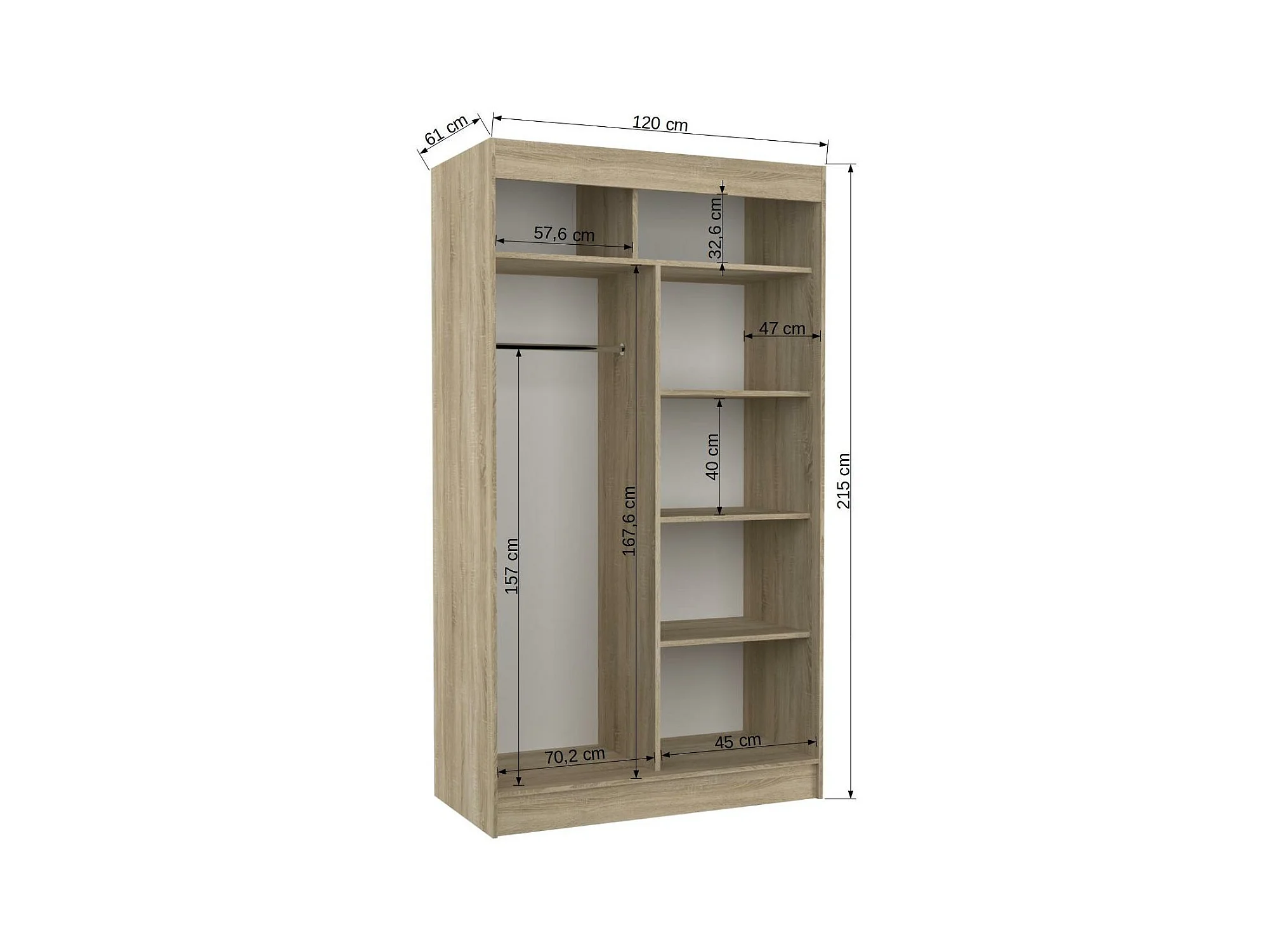 Armoire de chambre à portes coulissantes bois clair mat et blanc laqué Karola - 3 tailles-Largeur 120 cm