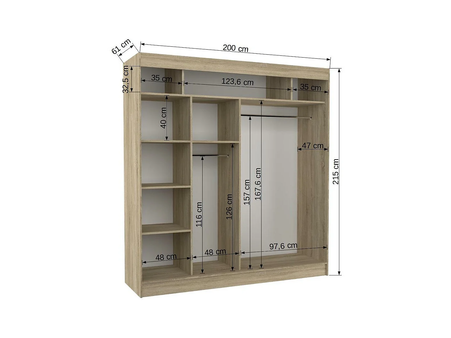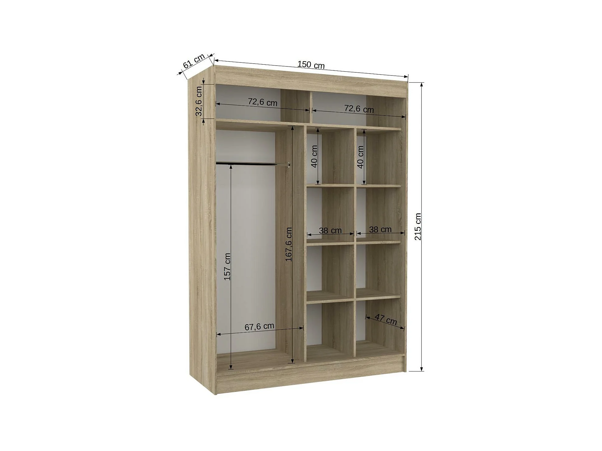 Armoire de chambre à portes coulissantes bois clair mat et blanc laqué Karola - 3 tailles-Largeur 150 cm