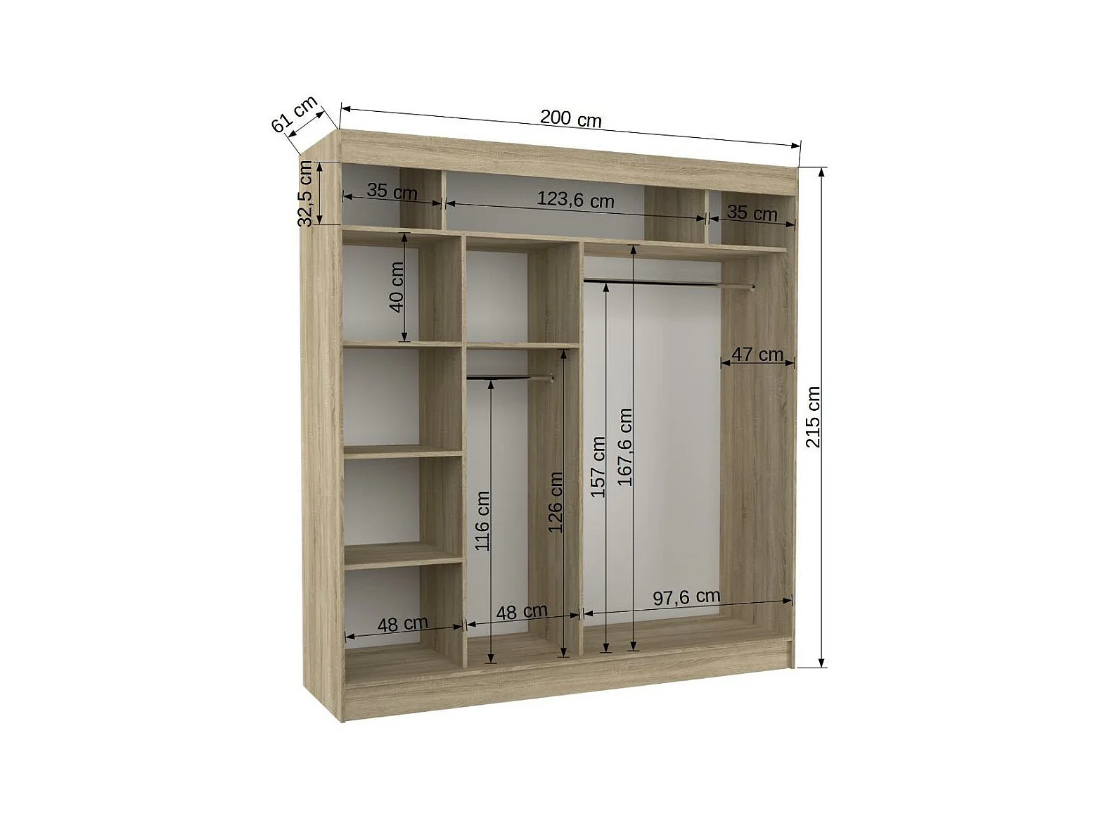 Armoire de chambre à portes coulissantes bois clair mat et blanc laqué Karola - 3 tailles-Largeur 200 cm