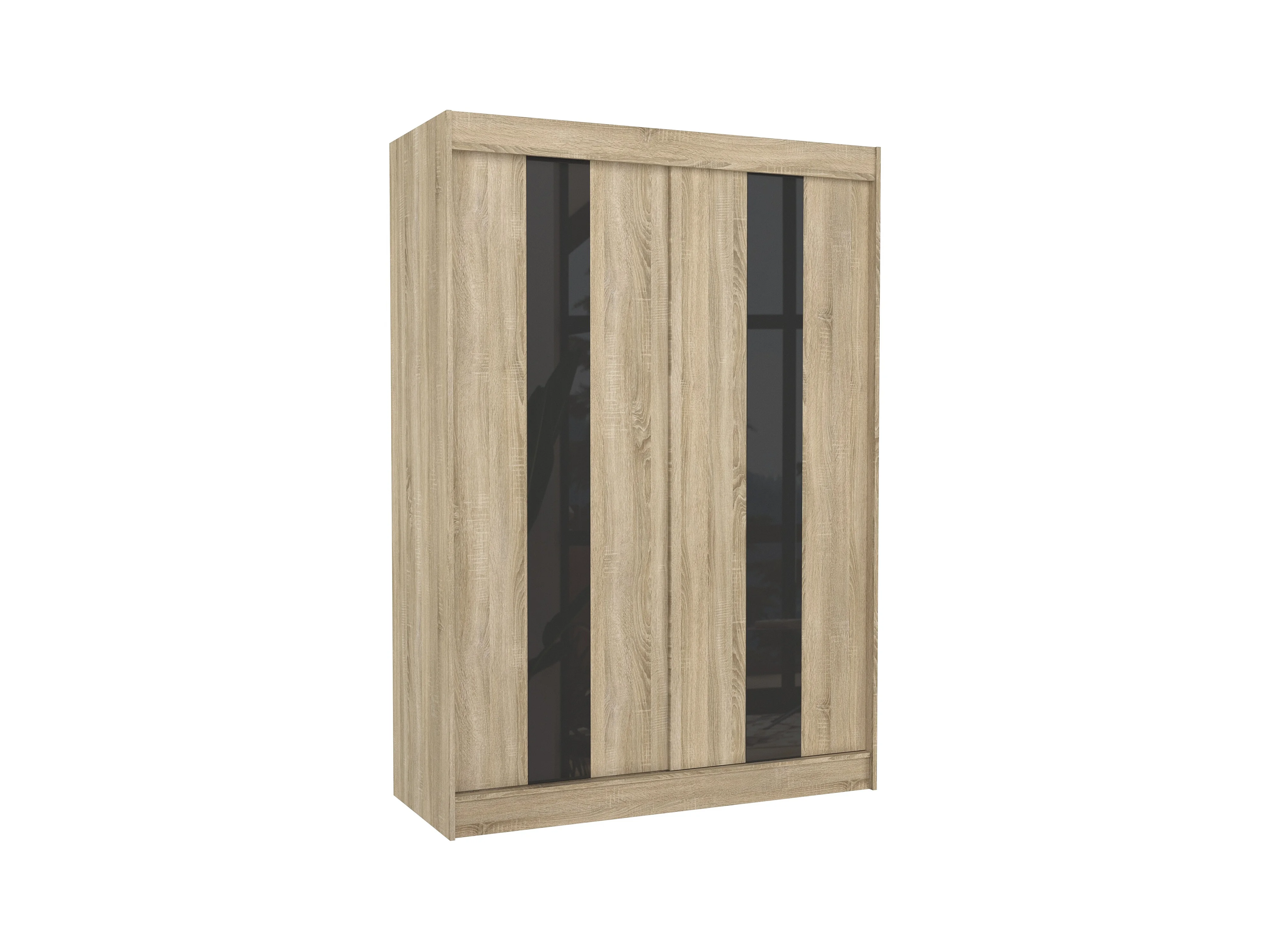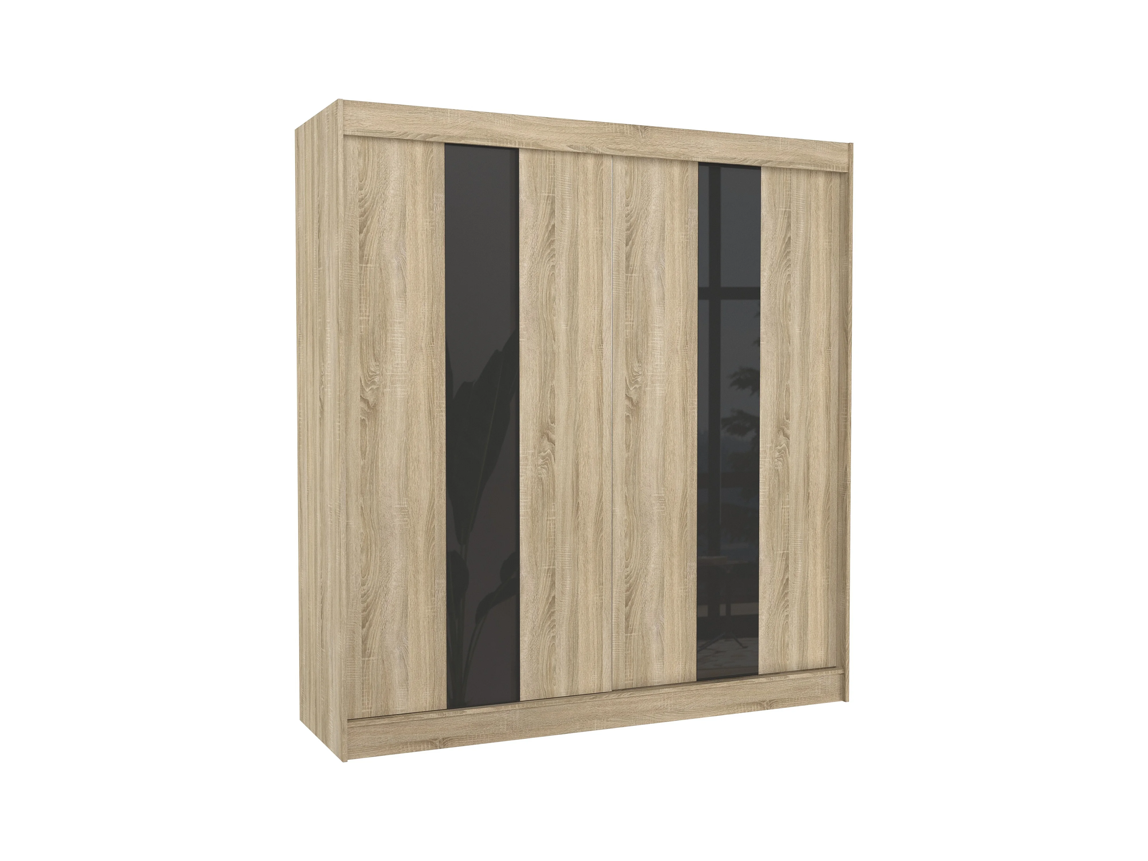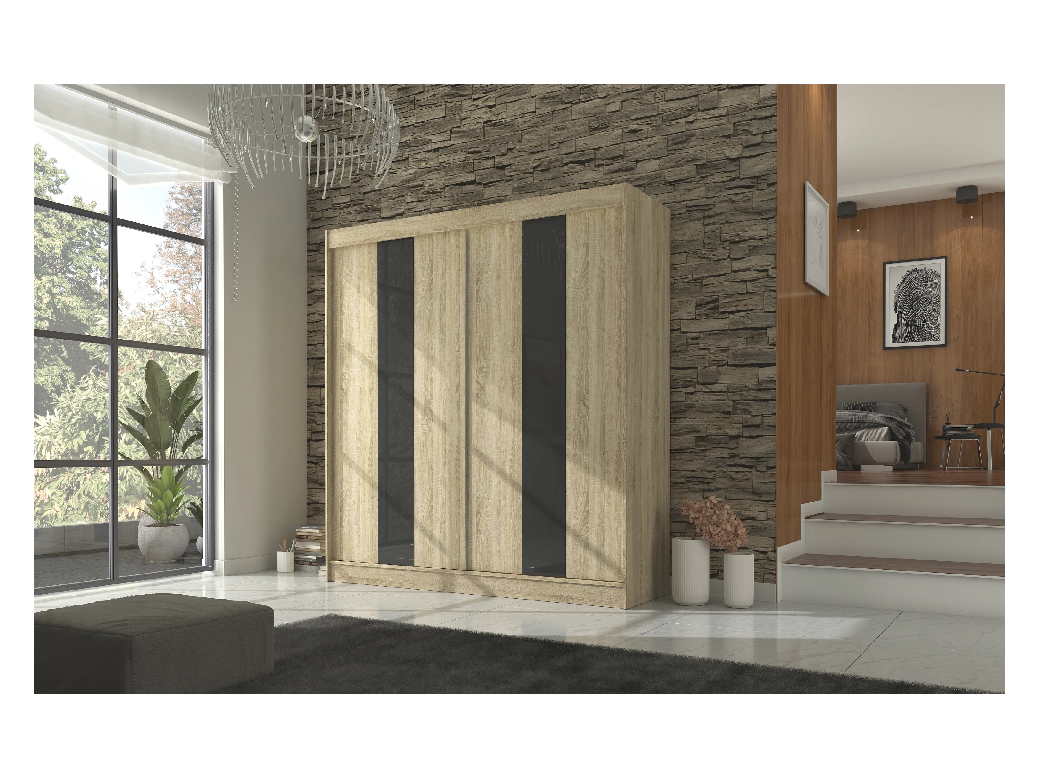 Armoire de chambre à portes coulissantes bois clair mat et noir laqué Karola - 3 tailles-Largeur 120 cm