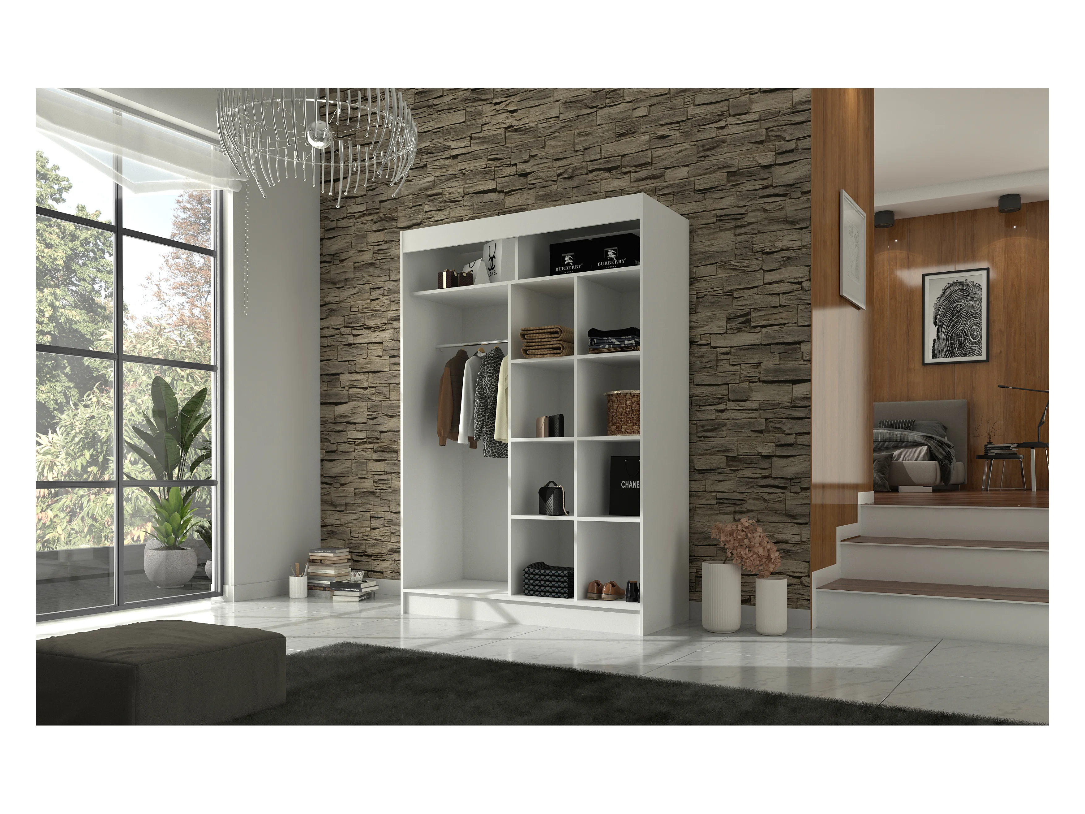 Armoire de chambre à portes coulissantes bois blanc mat et gris laqué Korza - 3 tailles-Largeur 150 cm