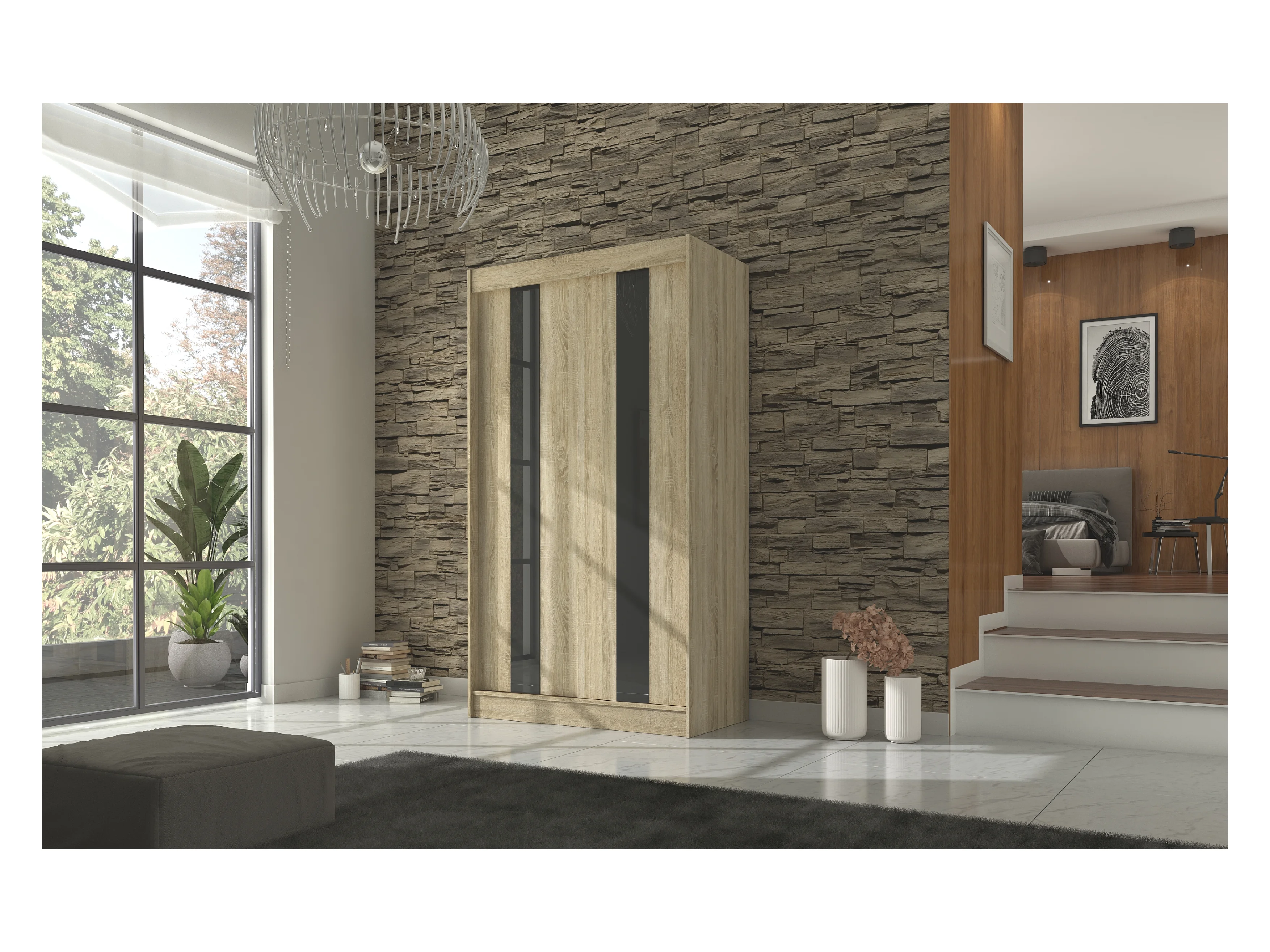 Armoire de chambre à portes coulissantes bois clair mat et noir laqué Karola - 3 tailles-Largeur 150 cm