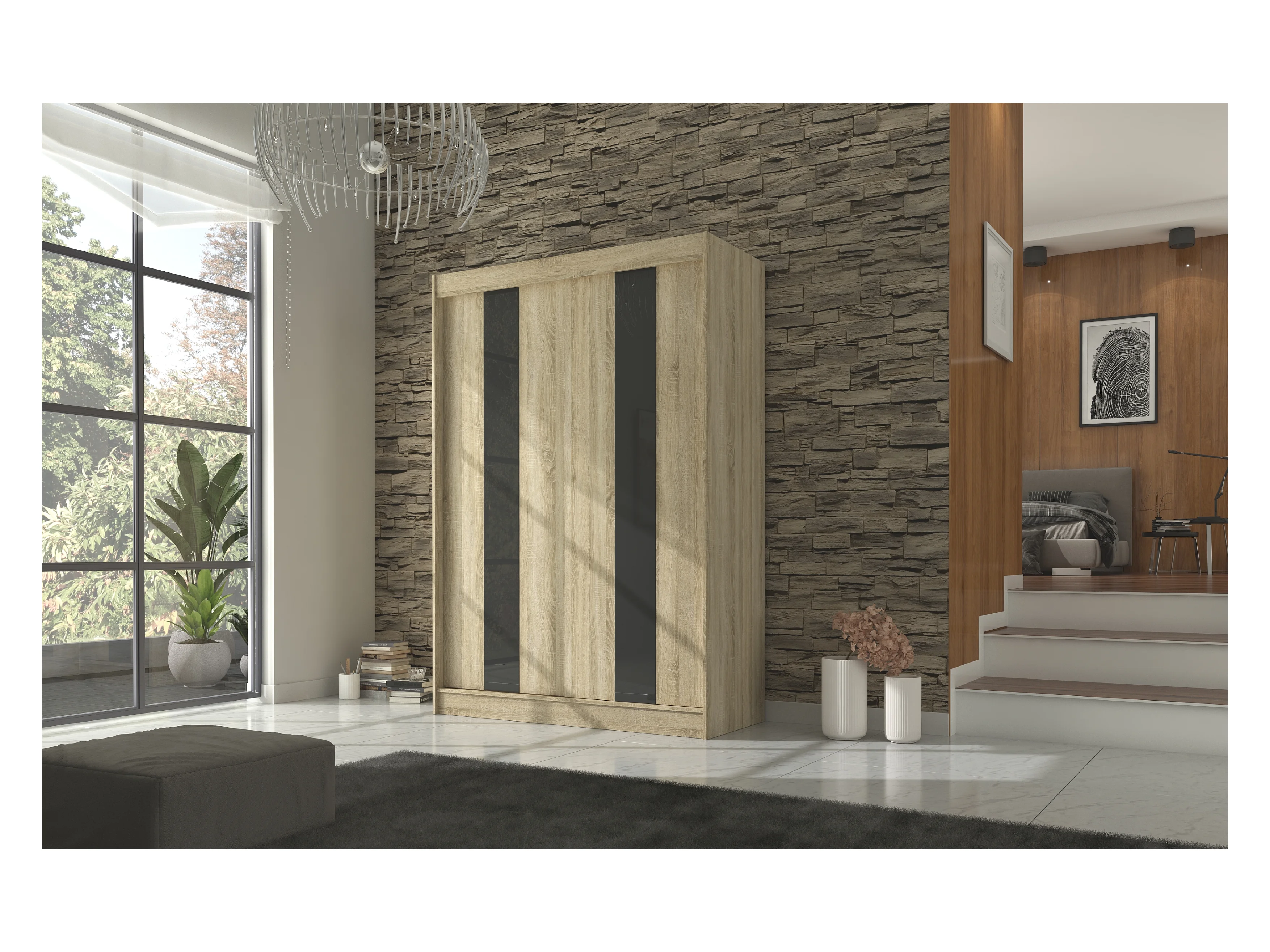 Armoire de chambre à portes coulissantes bois clair mat et noir laqué Karola - 3 tailles-Largeur 200 cm
