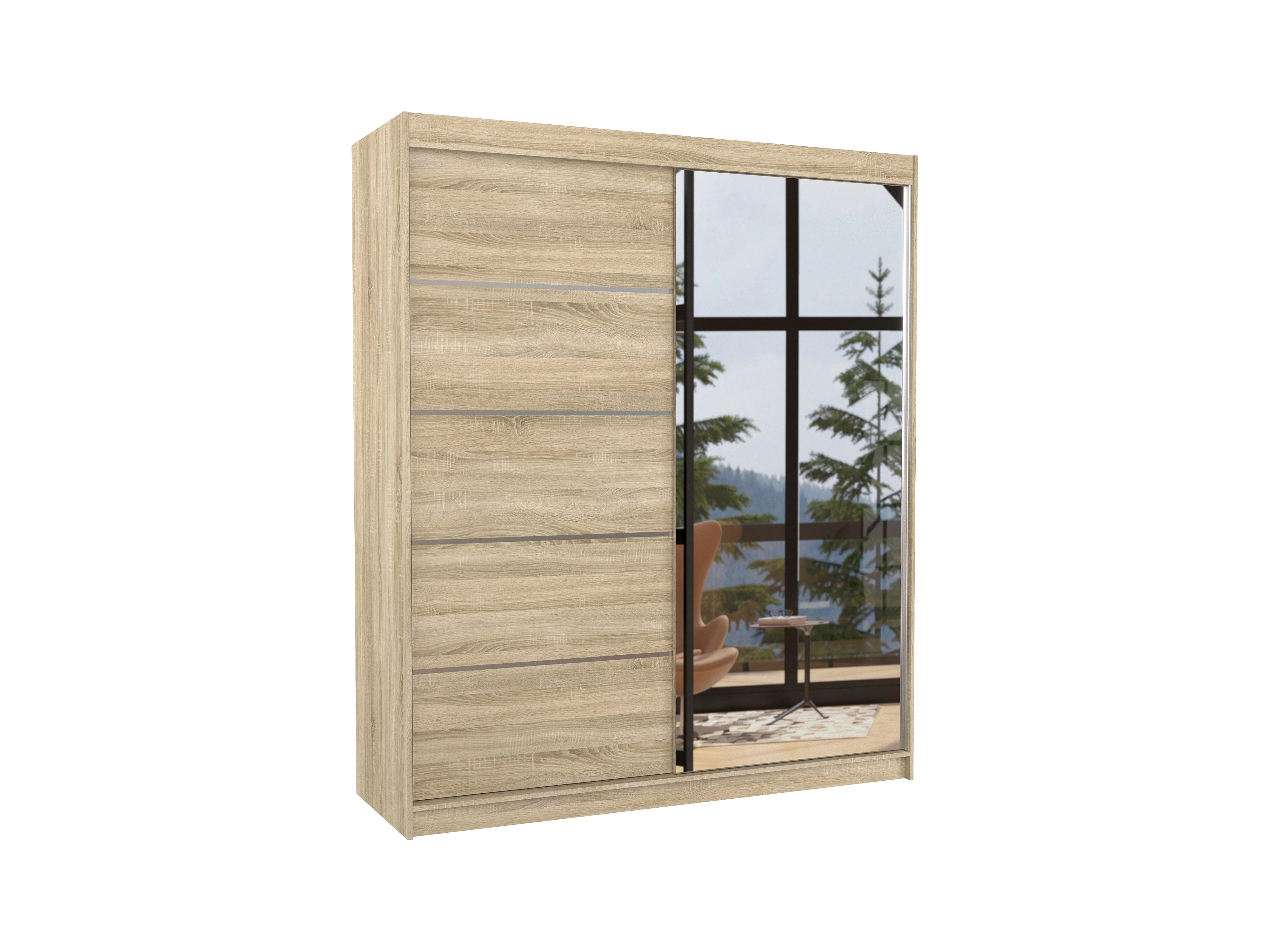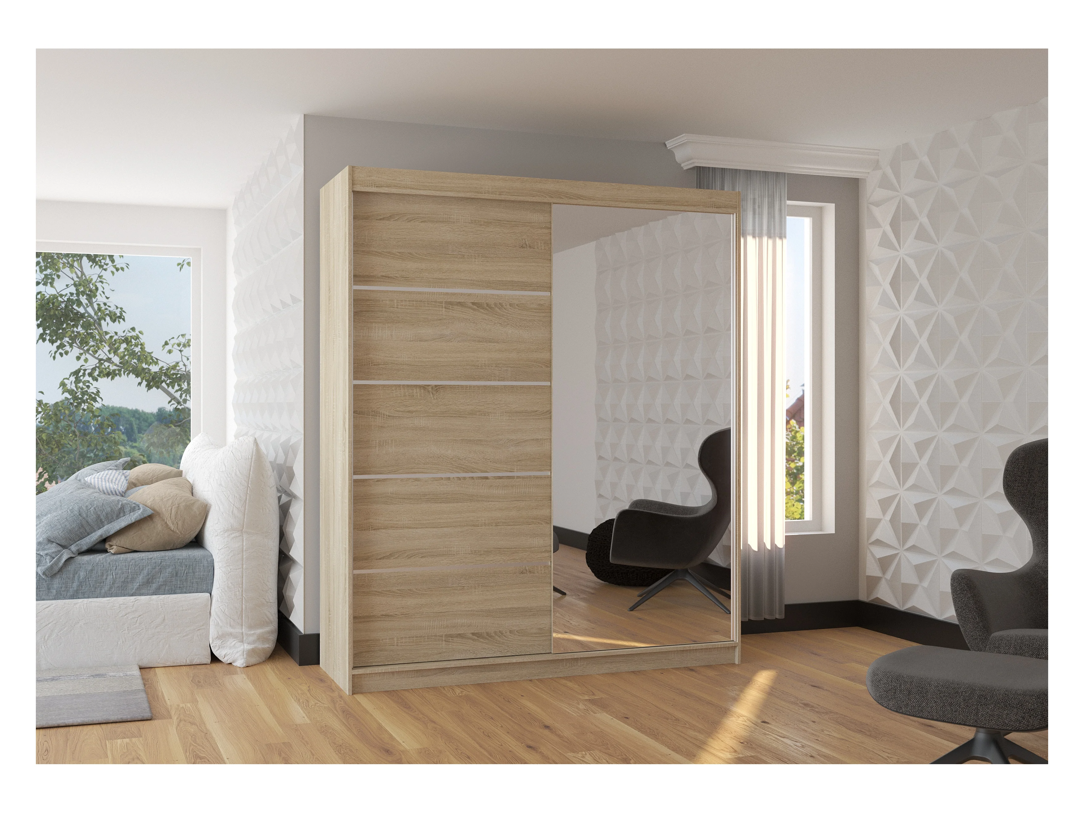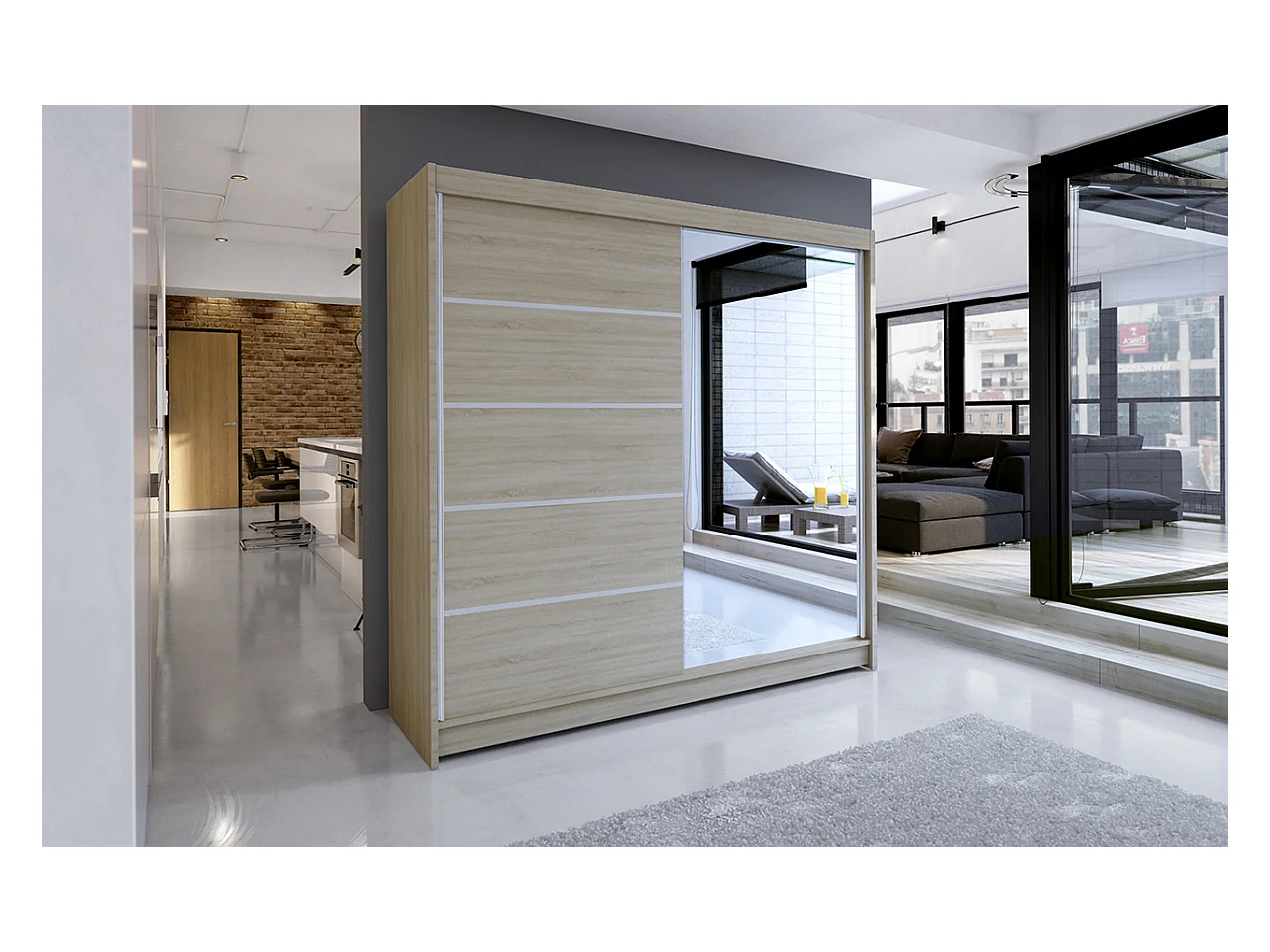 Armoire de chambre à coucher 2 portes coulissantes 1 bois clair et 1 miroir Masso 180cm