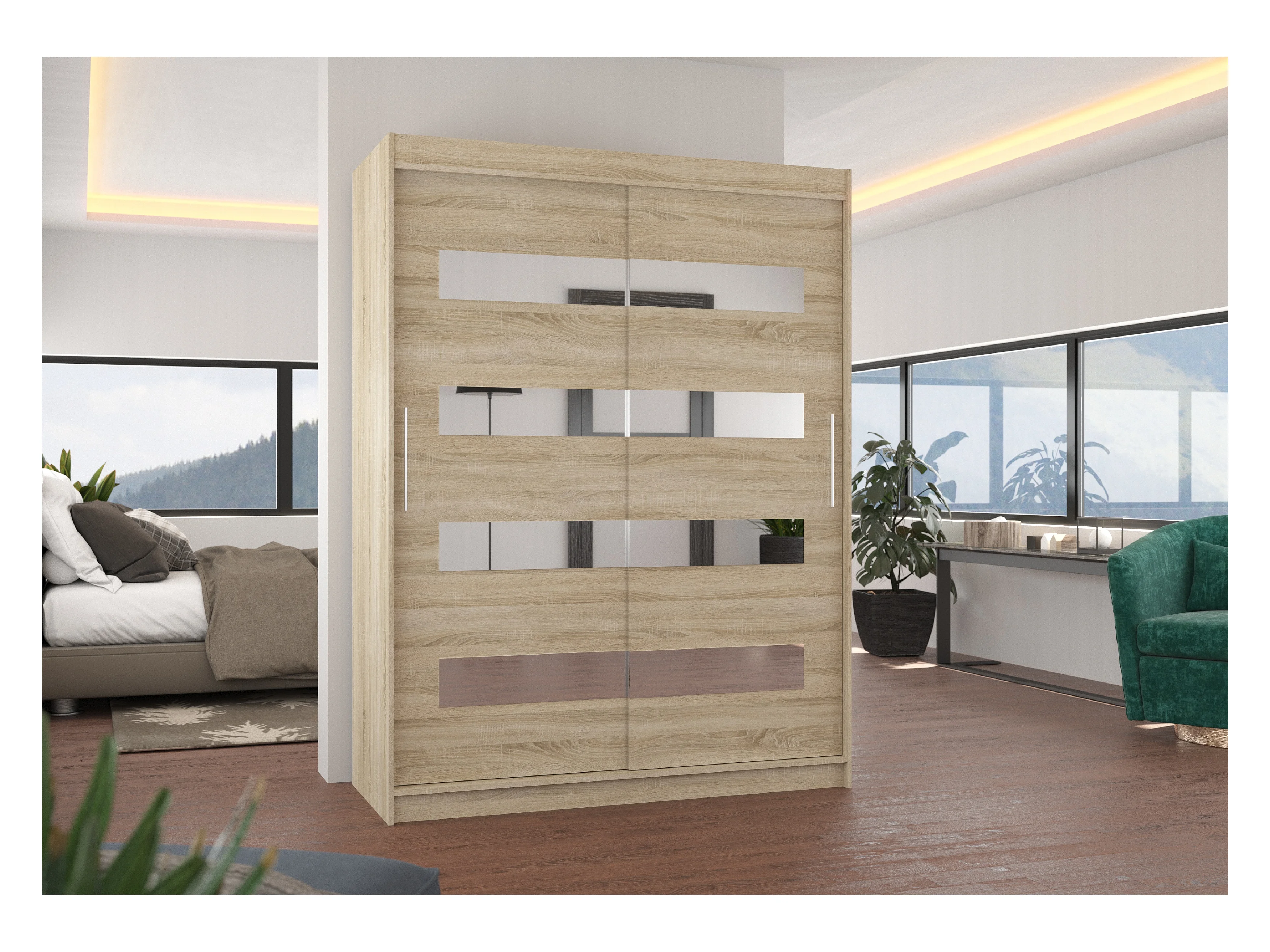 Armoire de chambre naturel 2 portes coulissantes naturel et miroirs horizontaux Bozika 150cm