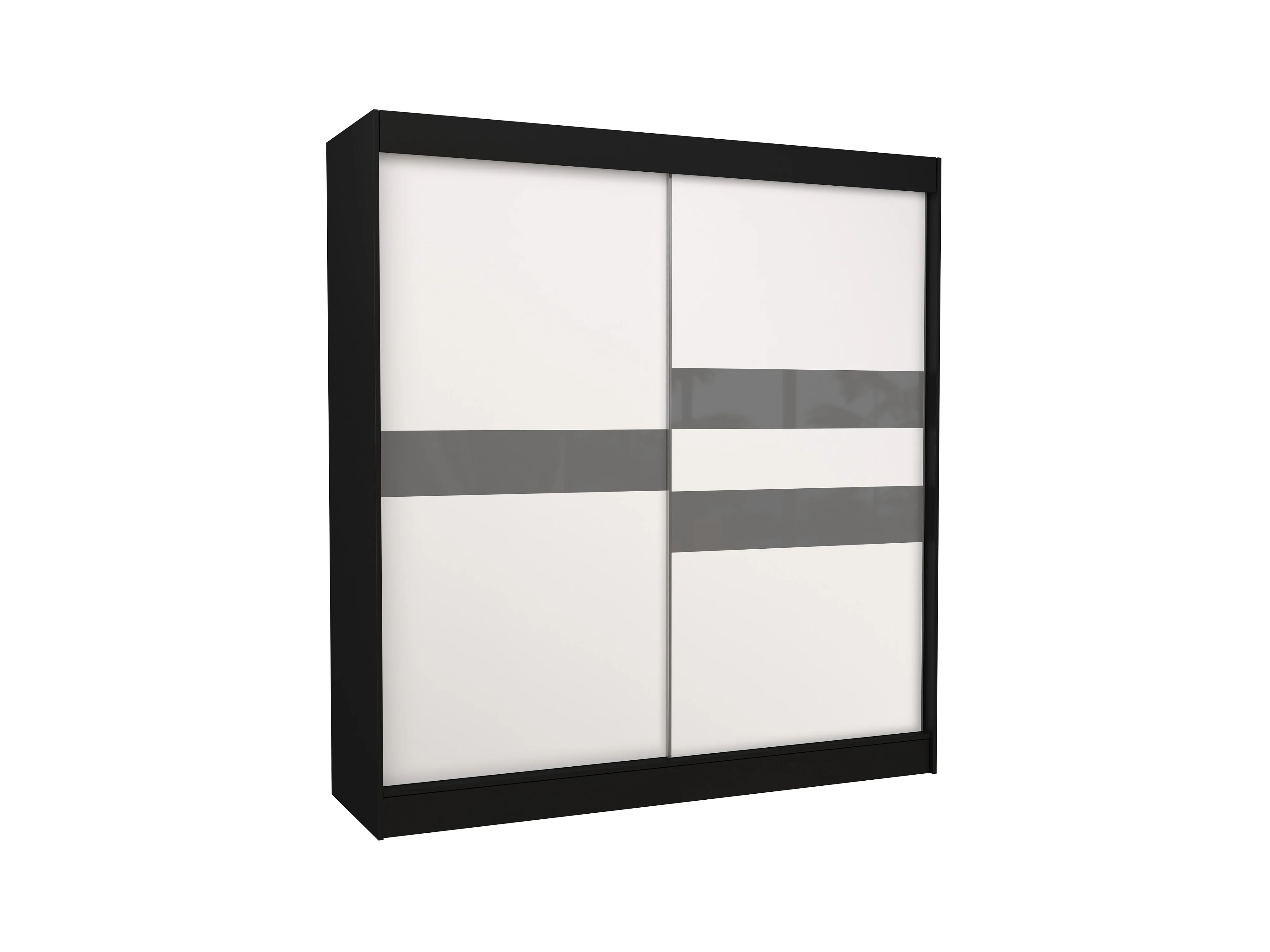 Armoire de chambre à portes coulissantes bois blanc mat et noir laqué Karola - 3 tailles-Largeur 150 cm