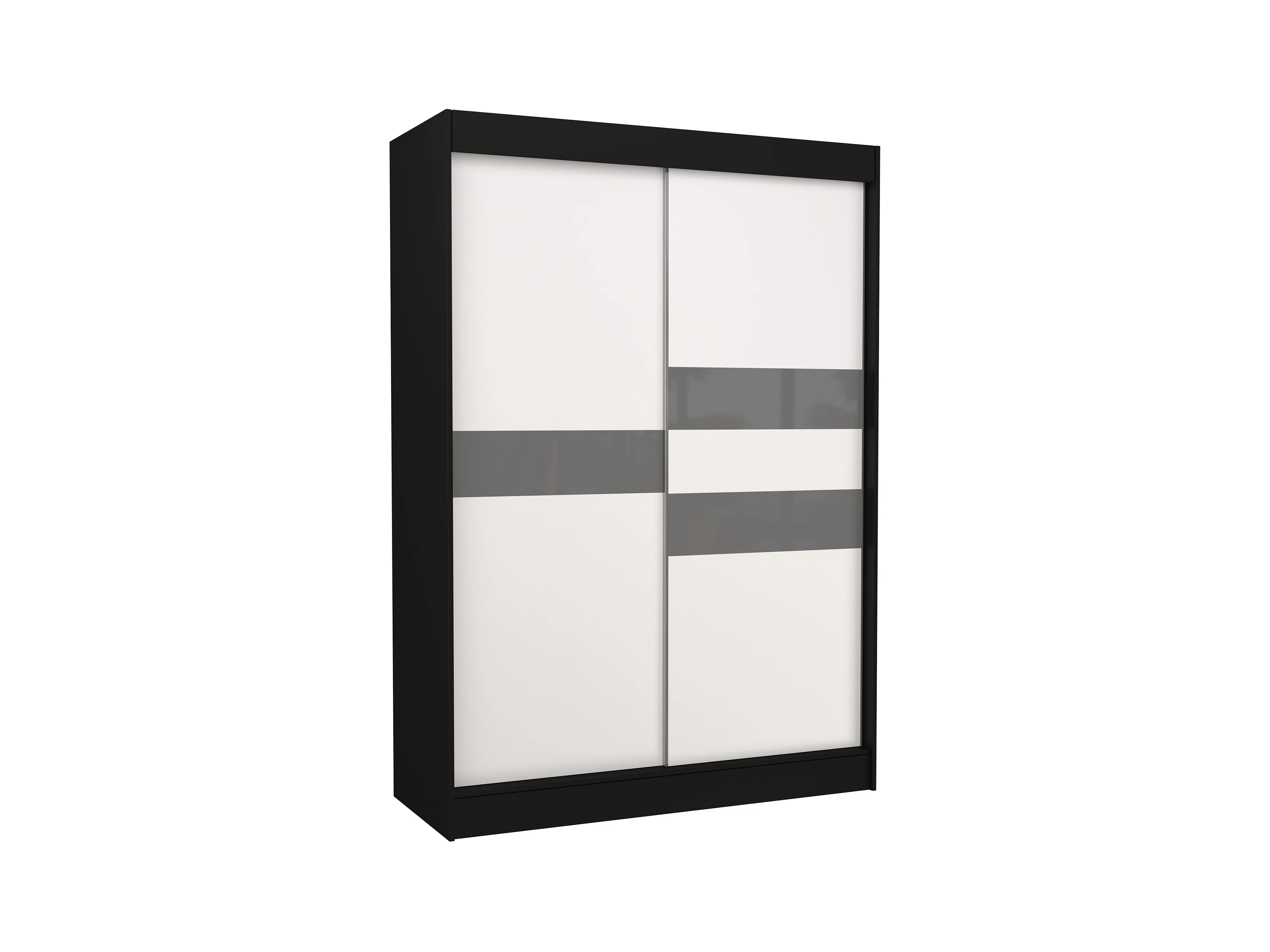 Armoire de chambre noir à portes coulissantes bois blanc mat et gris laqué Korza - 3 tailles-Largeur 150 cm