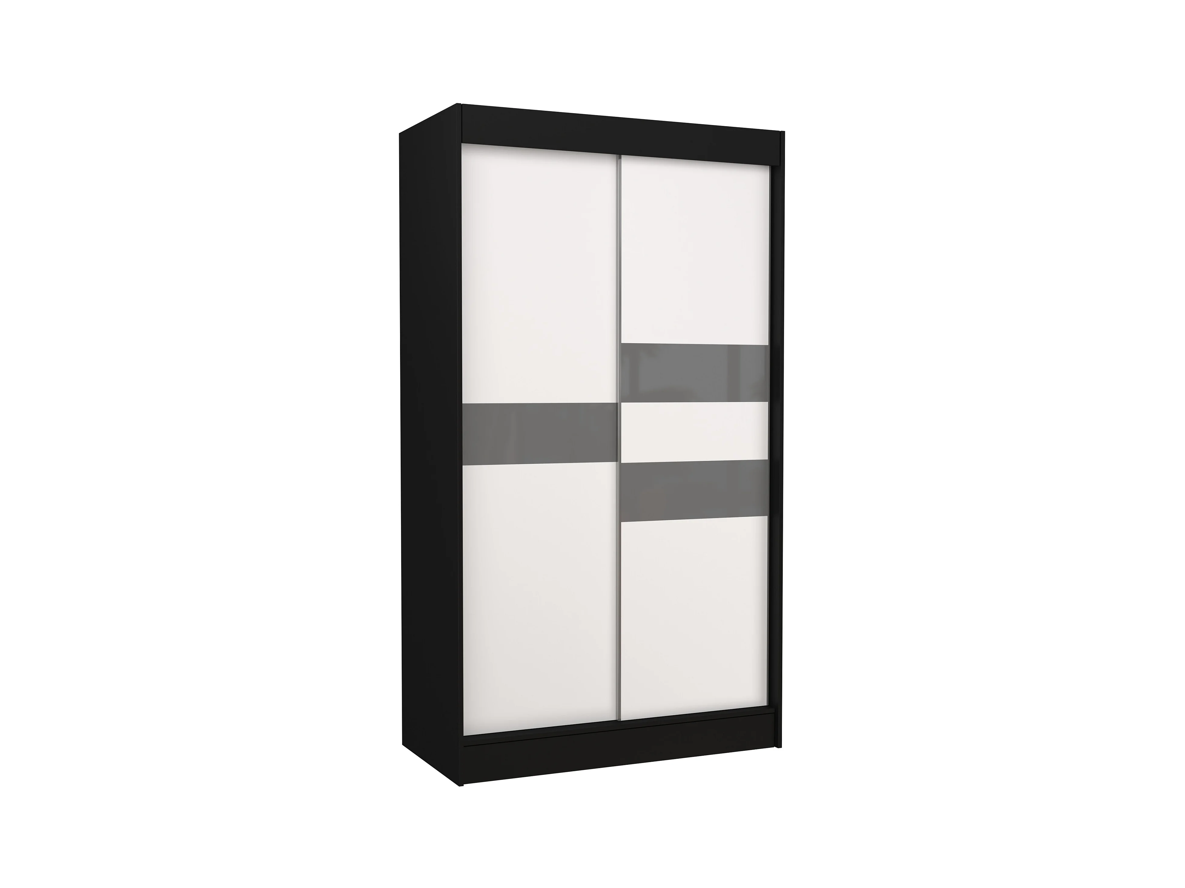 Armoire de chambre à portes coulissantes bois blanc mat et noir laqué Karola - 3 tailles-Largeur 120 cm