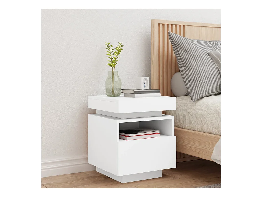 Table de chevet avec lumières LED blanc 40x39x48,5 cm FR55429