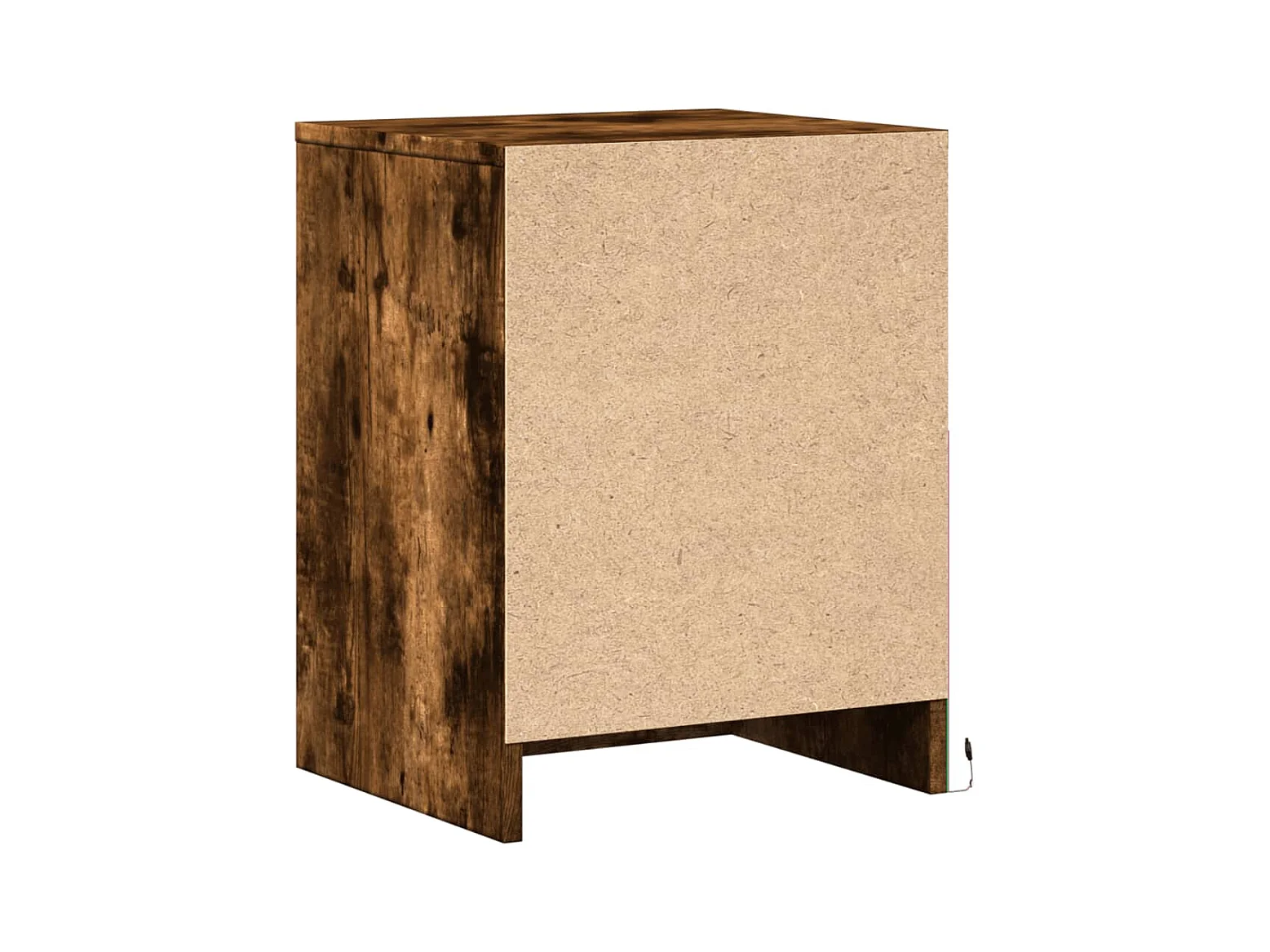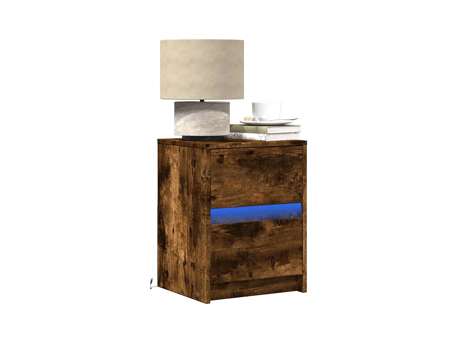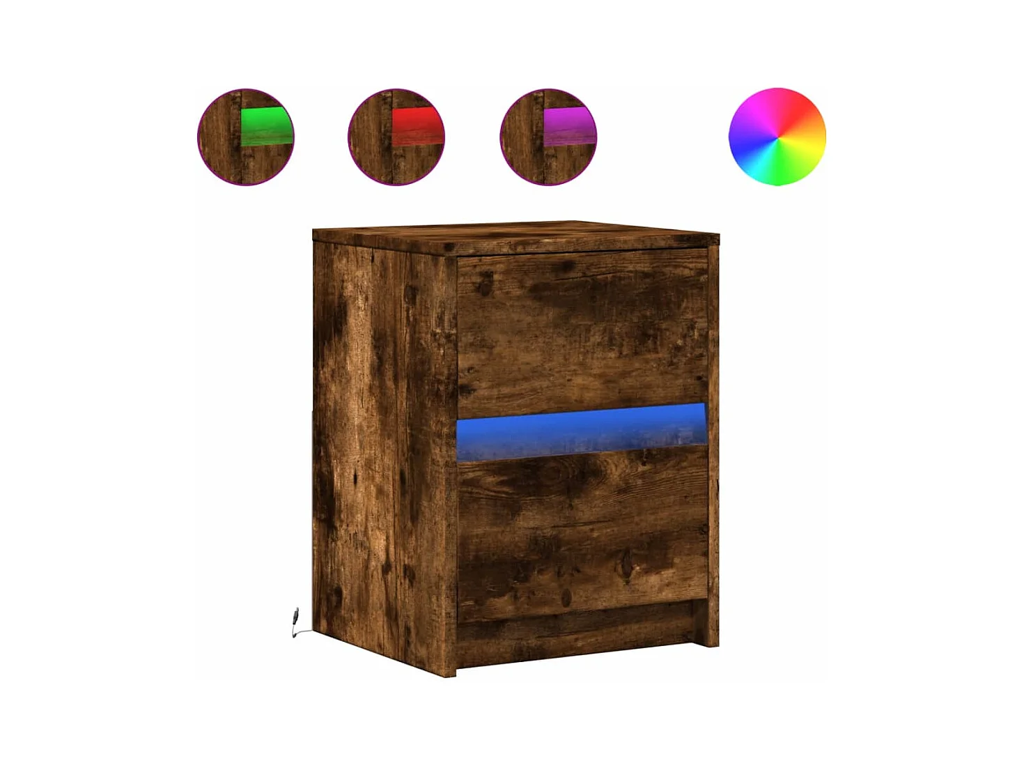 Armoire de chevet et lumières LED chêne fumé bois d'ingénierie