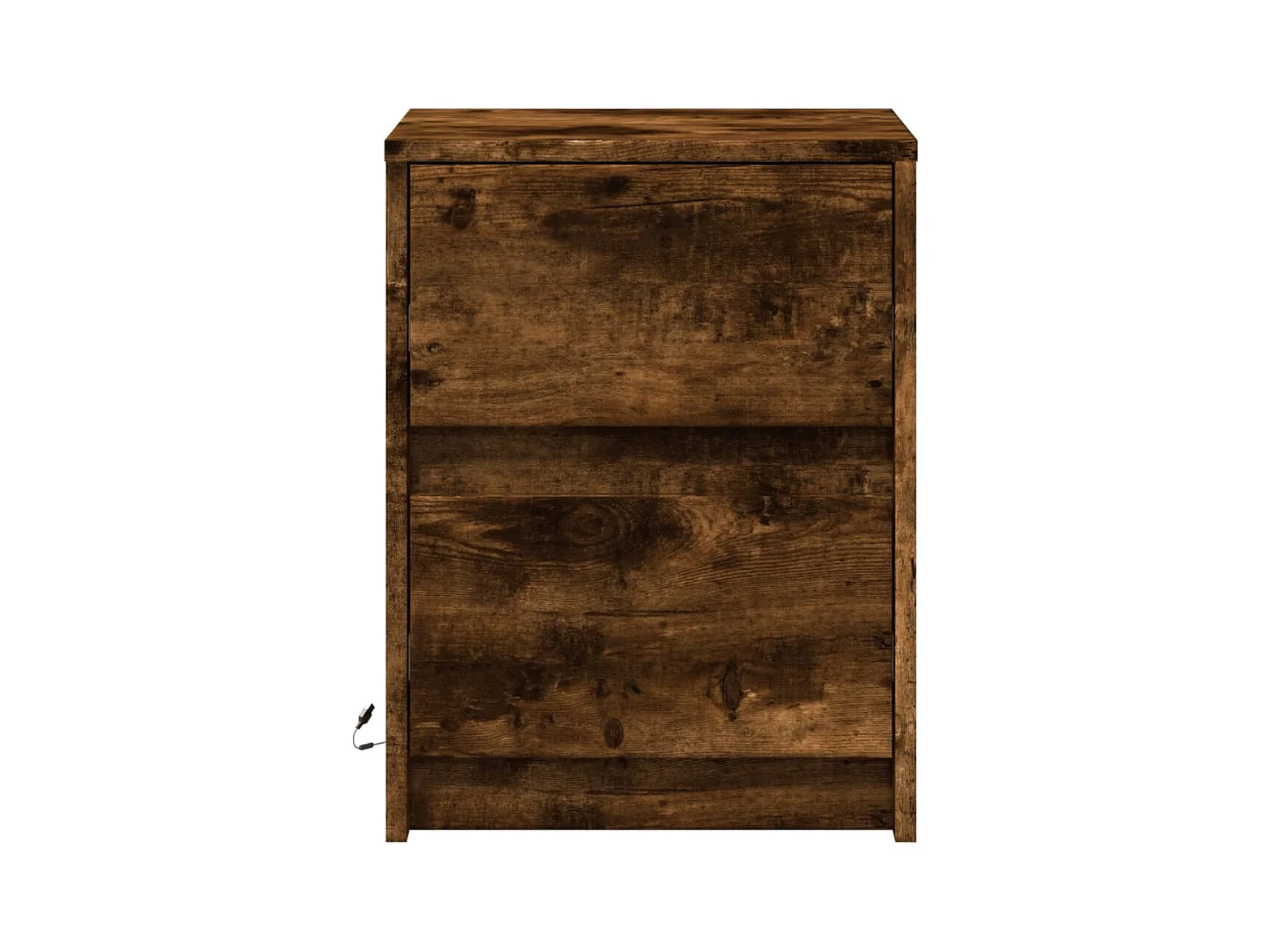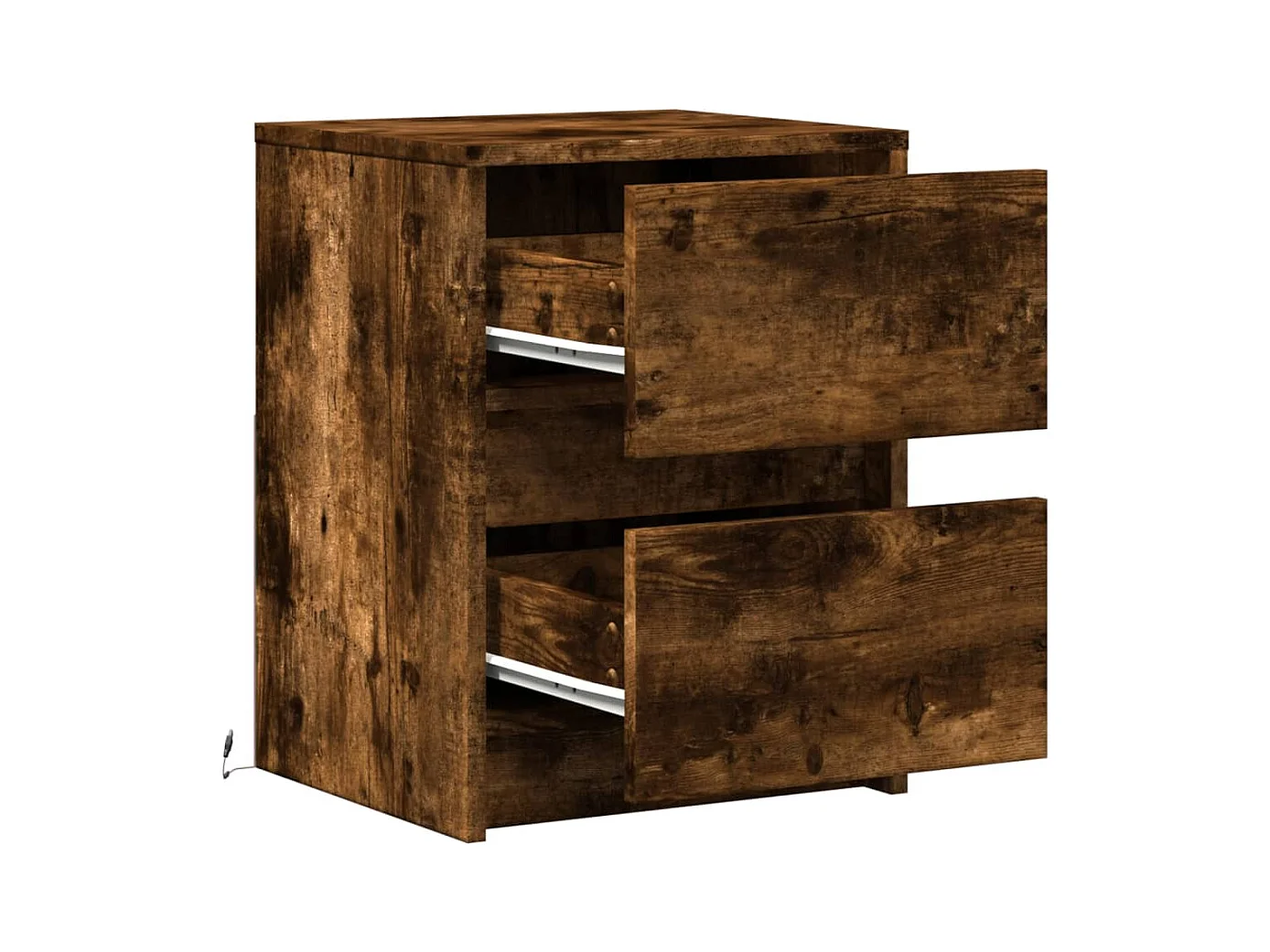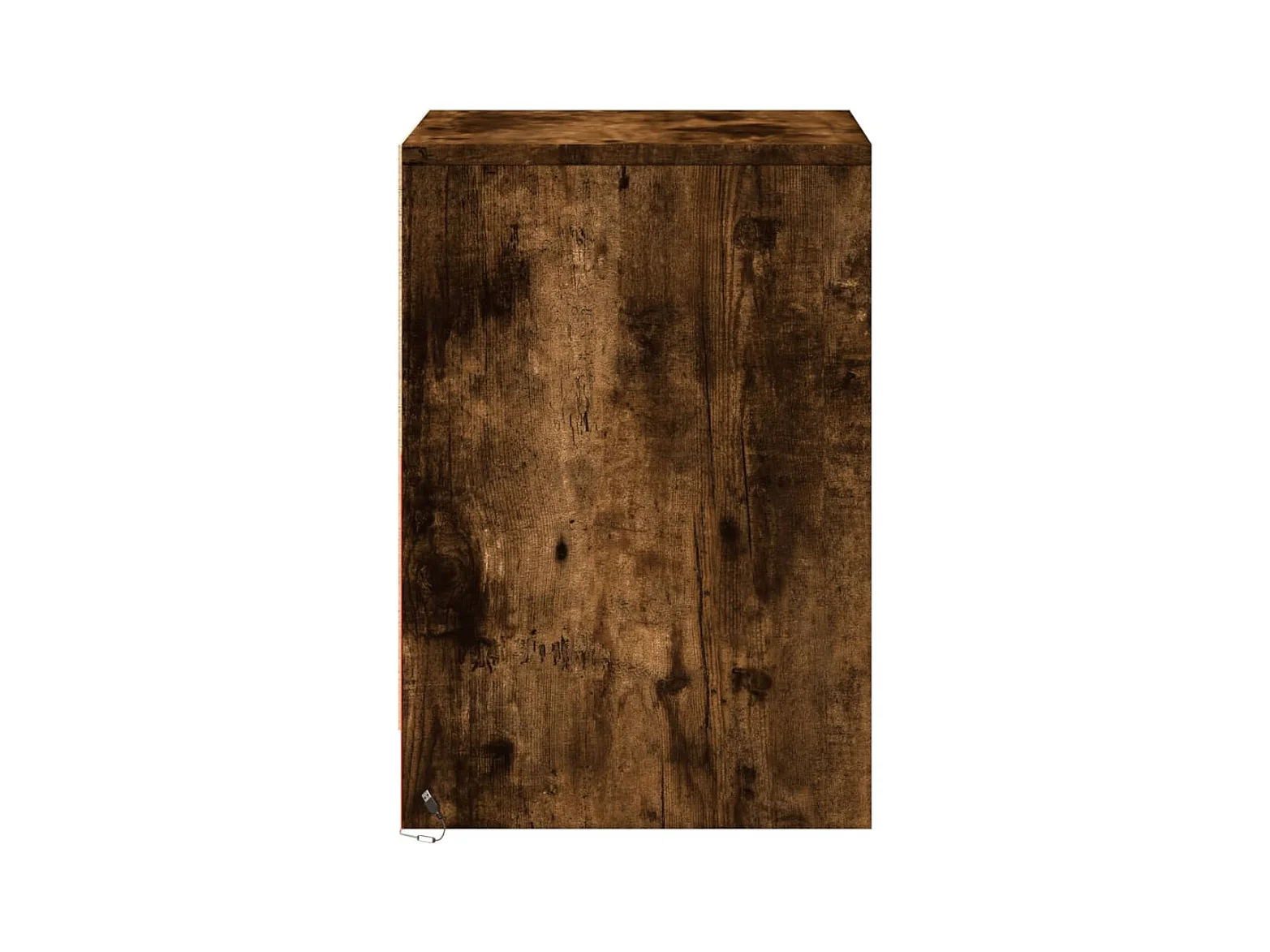 Armoire de chevet et lumières LED chêne fumé bois d'ingénierie