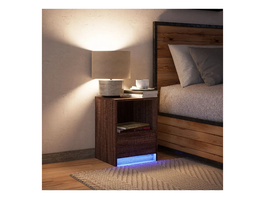 Armoire de chevet et lumières LED chêne marron bois ingénierie