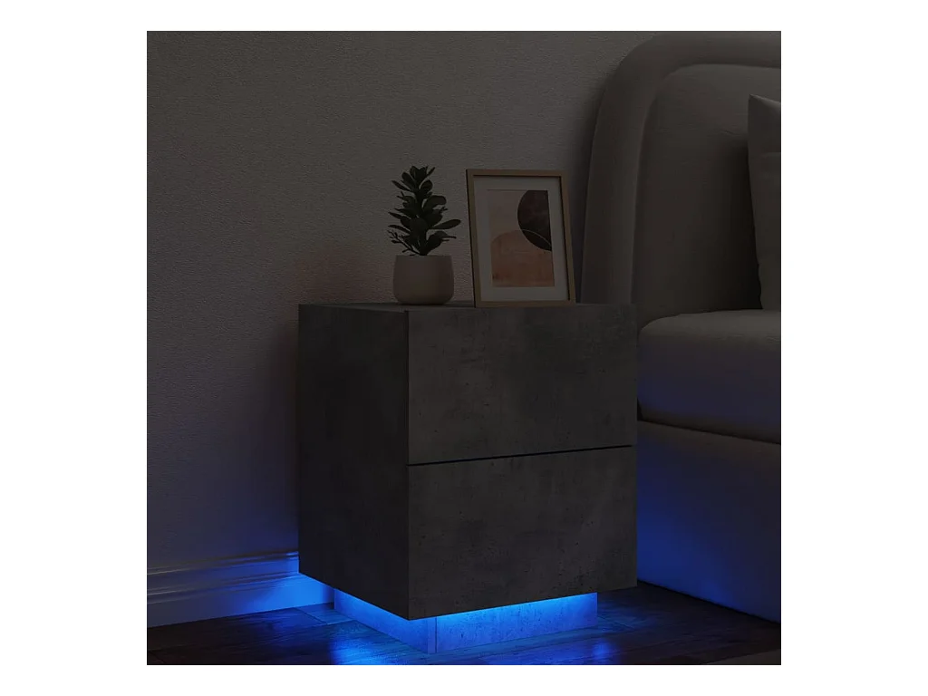 Table de chevet avec lumières LED gris béton 40x39x37 cm